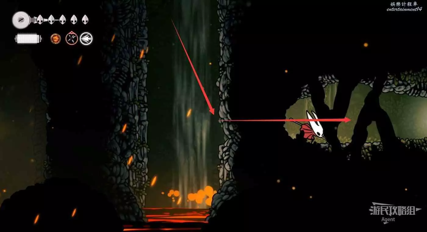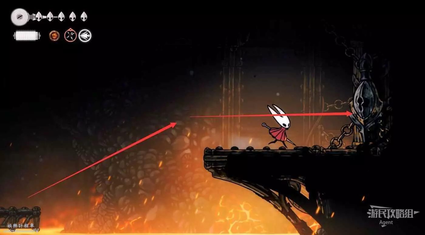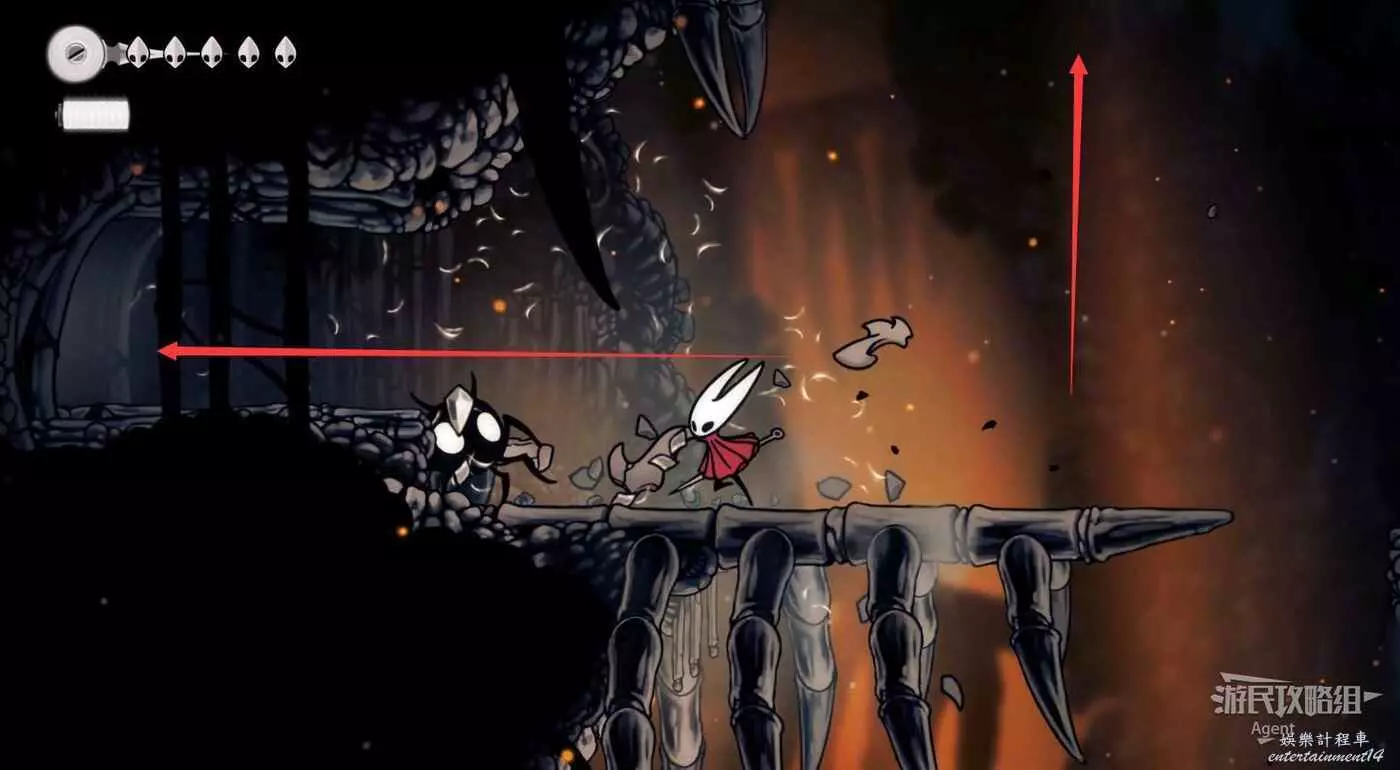 等岩漿流過後再跳躍,到上面找到只跳蚤。旁邊的石塊可以打碎方便回去。