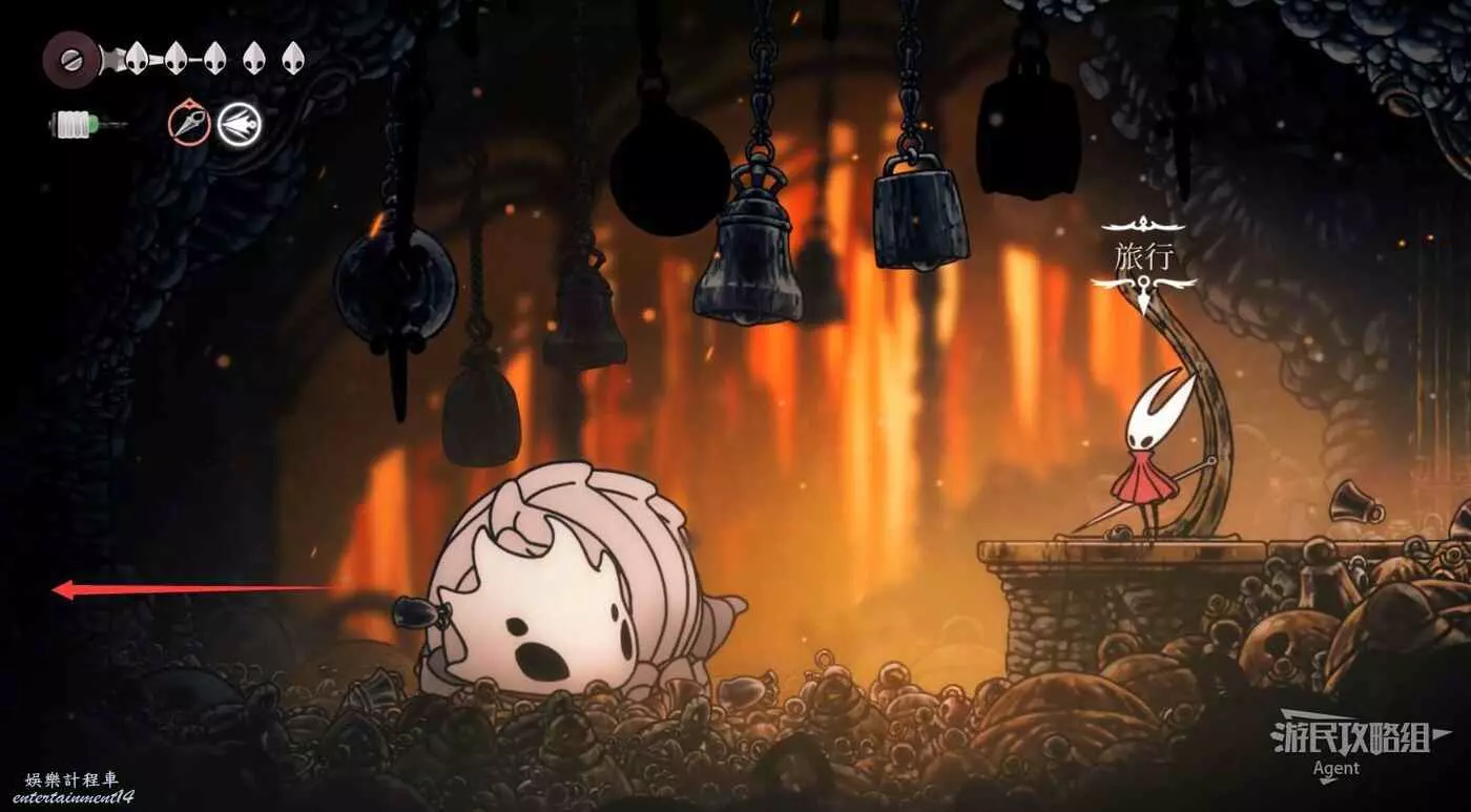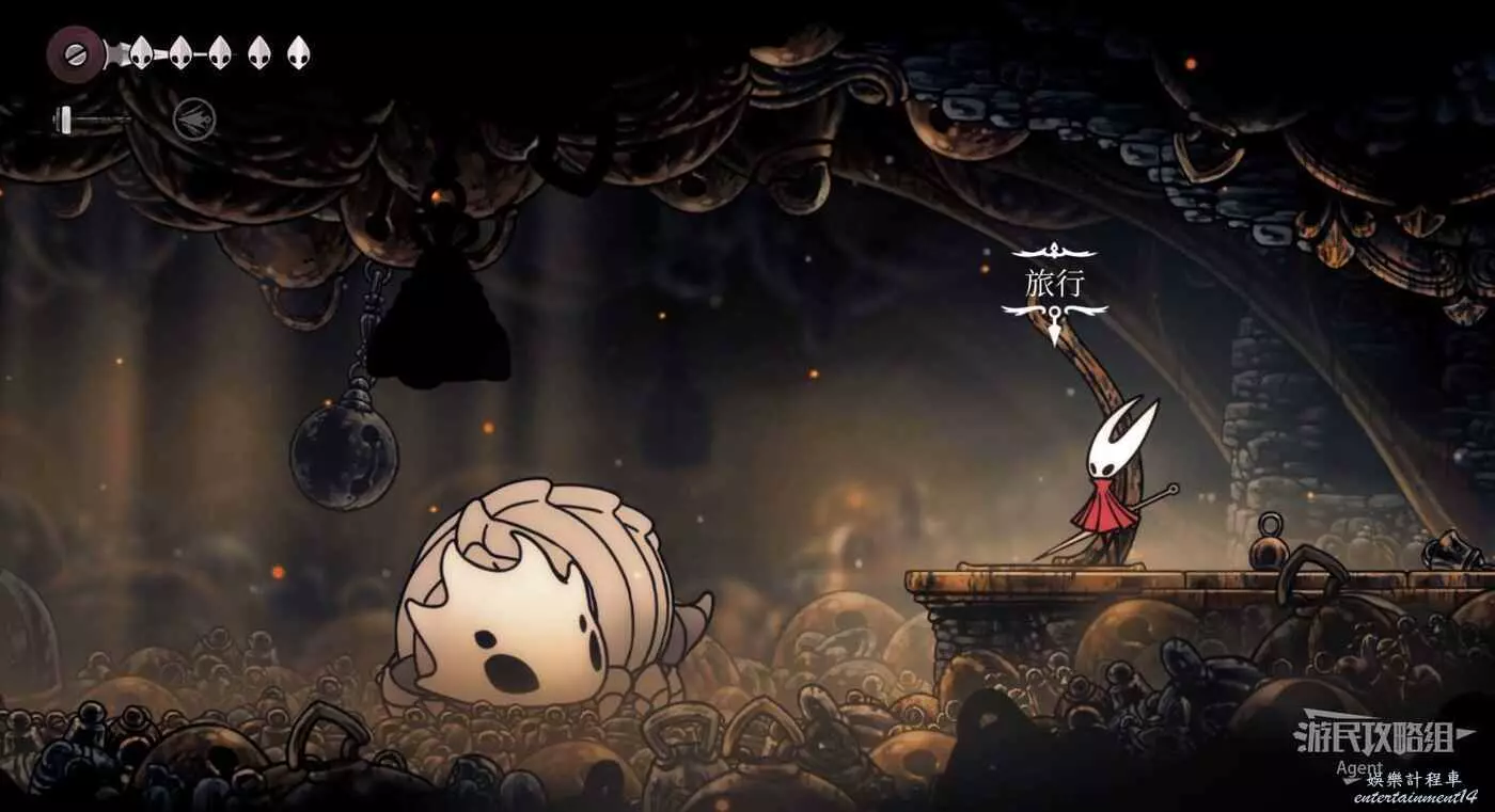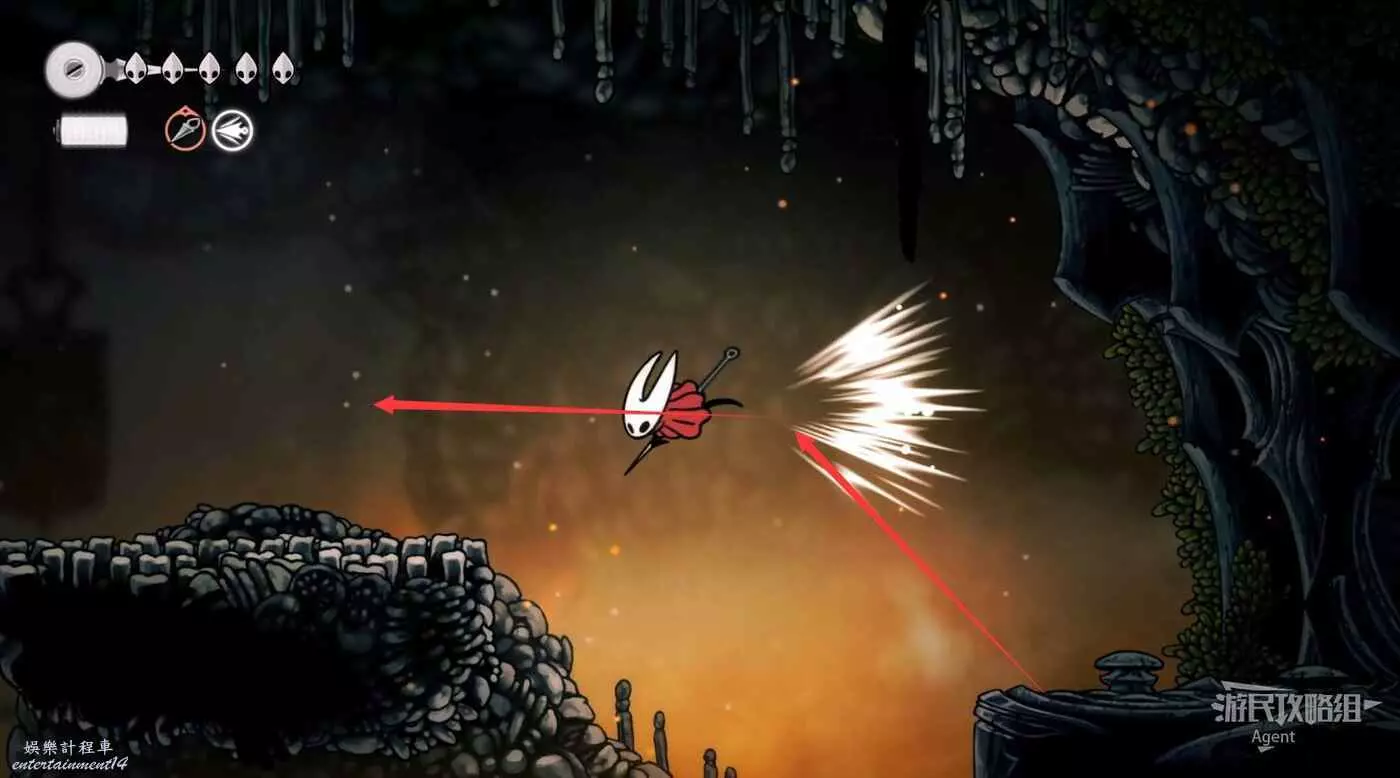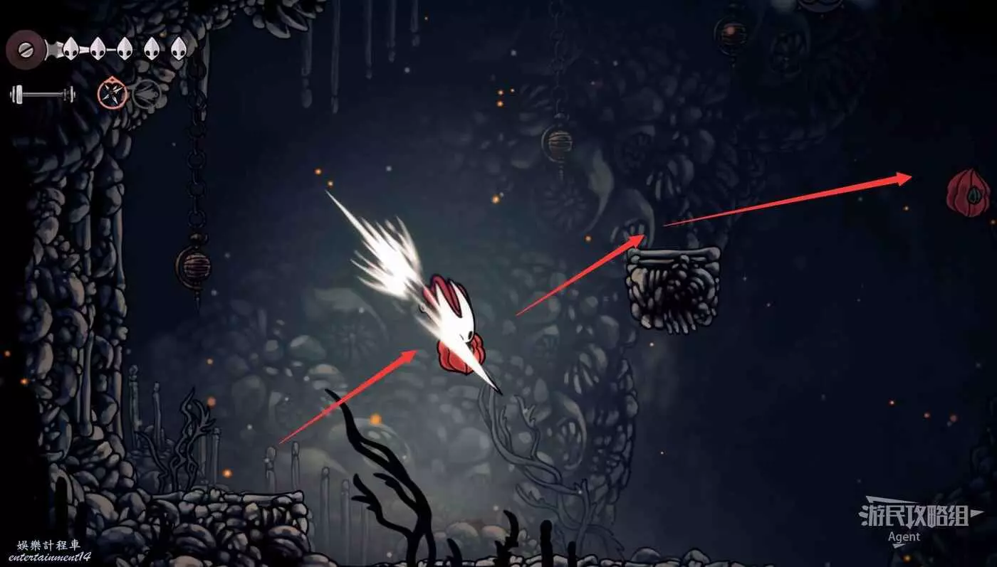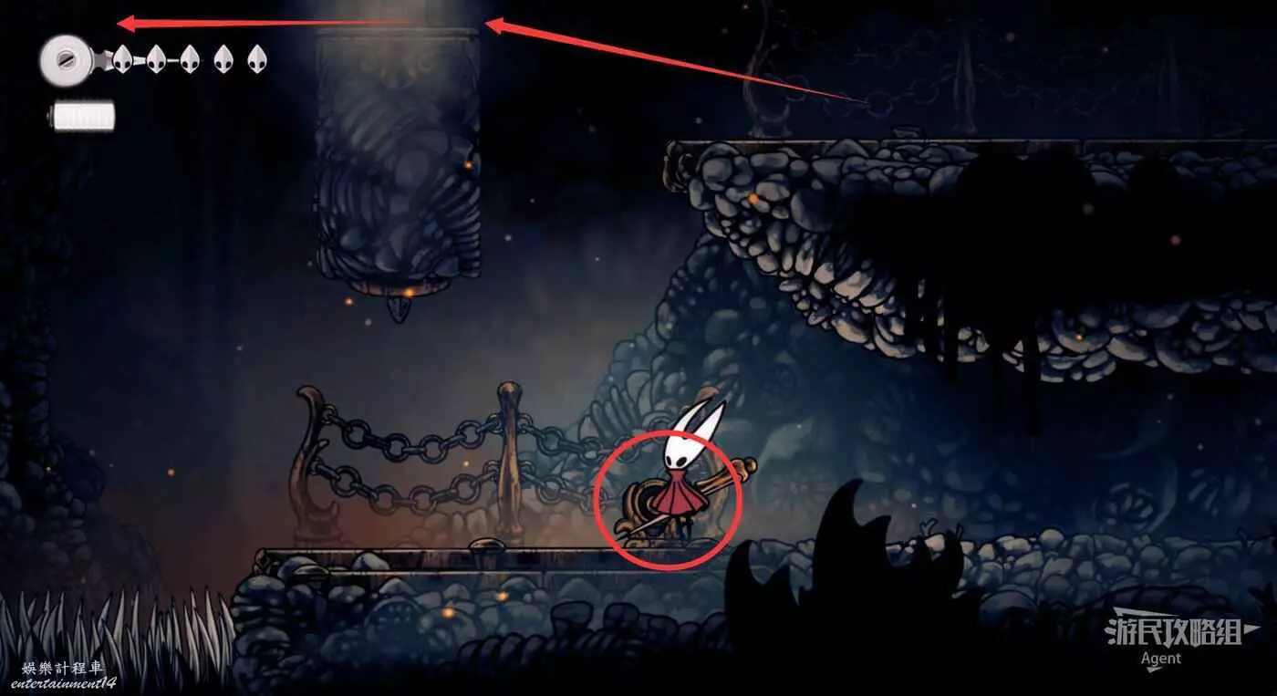 到左下角的支路,使用50念珠解鎖傳送點。然後繼續往左打穿石牆,裡面有只跳蚤。