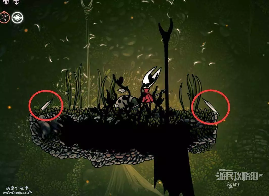 上圖的第三只燧甲蟲,需要對紅色花蕾使用下劈跳上去才能找到。
