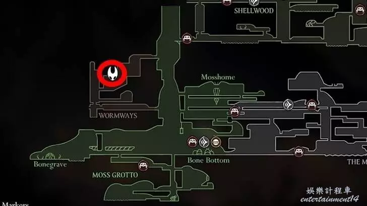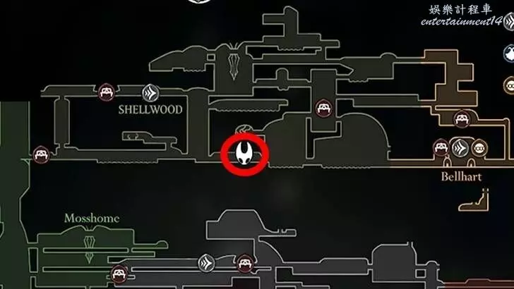 位於苔穴區域的髓底鎮,靠近髓骨洞窟入口附近的平台上,只有在擊敗鐘道獸後才會出現。