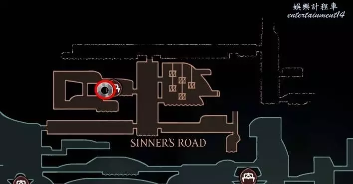 位於罪石牢獄入口附近,沿著小路一直往左走就能看到。