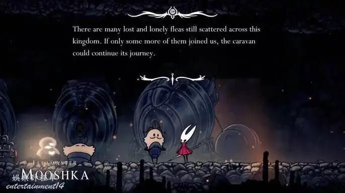 在遠處黑暗的滿是骷髏頭的房間裡,小心地幹掉這個快樂的豪豬生物,然後爬到左邊的壁架上,出乎意料地,你會發現一些友好的面孔。在這裡等待著一支由跳蚤人組成的商隊,為首的是弗萊馬斯特·穆什卡。
