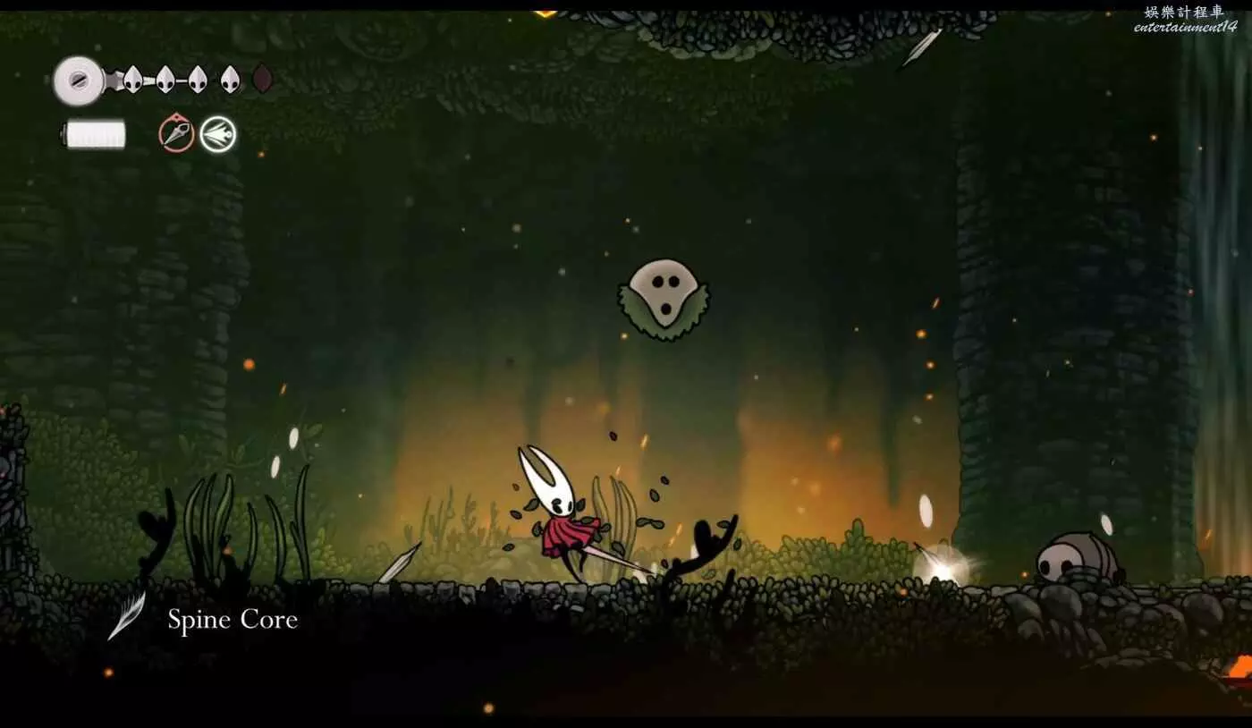 要收集脊骨核心,你需要讓它們朝你發射尖刺,然後用骨釘打破這些插入地面的尖刺。需要注意的是,從脊背蟲身上掉落的發光物品必須觸碰到地面才能被拾取。