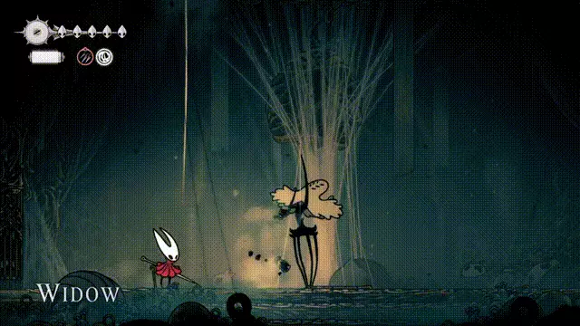 黑寡婦的主要攻擊破綻出現在它拉扯絲線、準備向黃蜂女(Hornet)投擲鈴鐺的時刻。它使用該攻擊時,會有幾秒的脆弱期 —— 你有足夠時間在它移動到舞台其他區域前,對它發起數次攻擊。