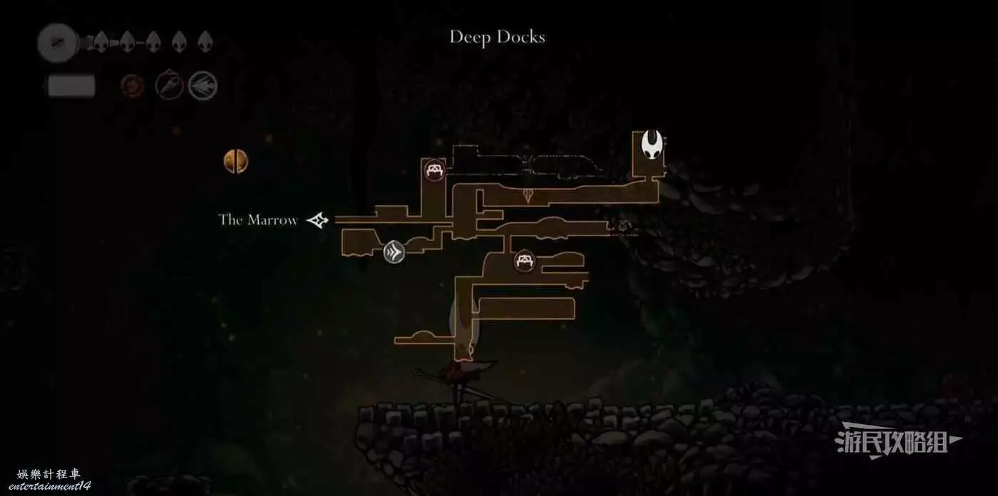 解鎖疾風步(衝刺)首先需要前往位於髓骨洞窟區域右下角的深塢,持續往區域右上角走,使用念珠解鎖鐘道和長椅,從最右側長椅登上平台,沿途清掉紅蟻怪,然後從頂部離開此房間。