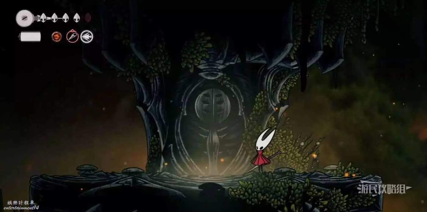 右側有一扇封閉的骨門,左側的路徑需要清掉許多敵人。清完敵人後往左走,進入下方房間後,先攻擊右側爆炸岩石開返回長椅的近路,然後往左走,與雕像互動即可獲得【疾風步】。