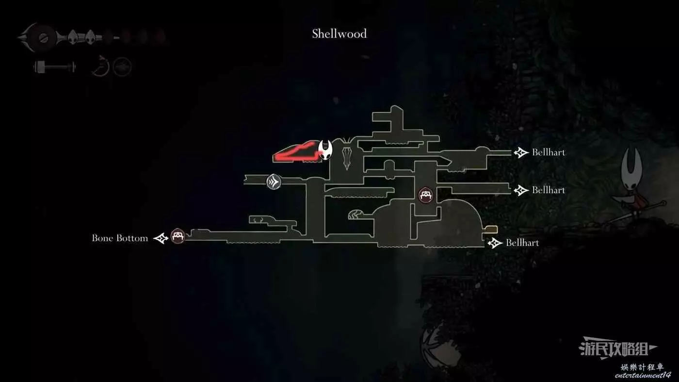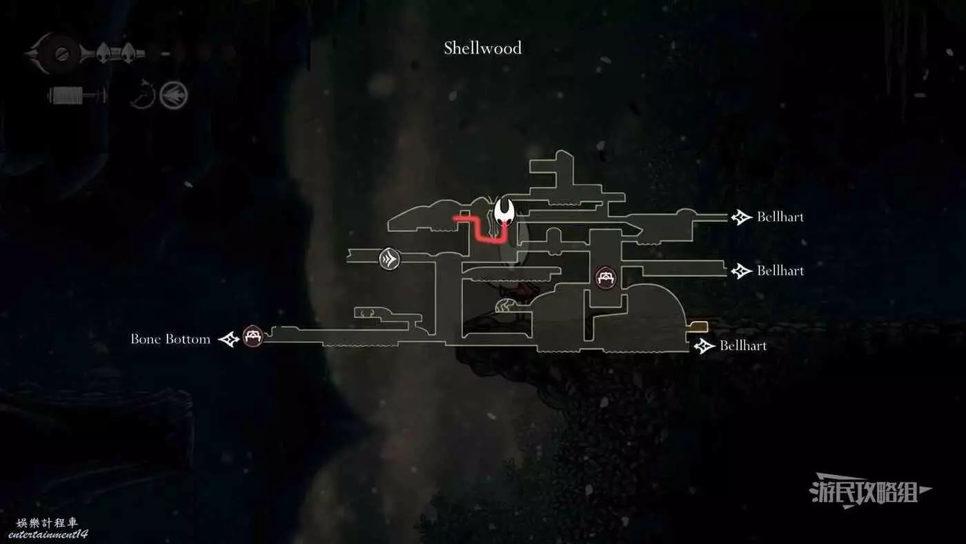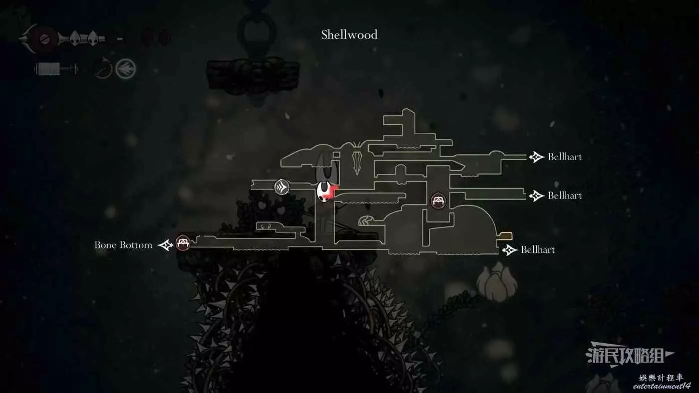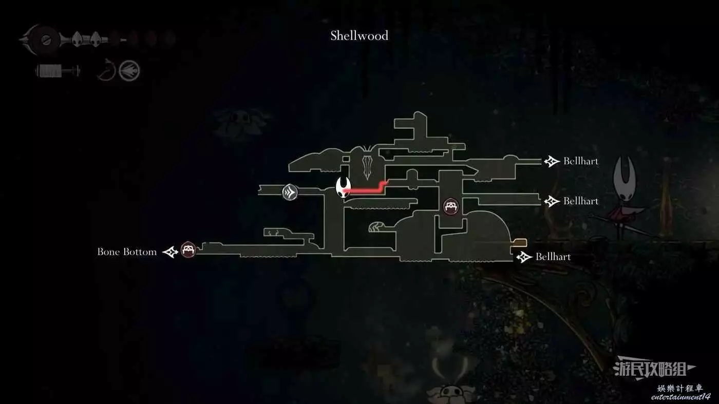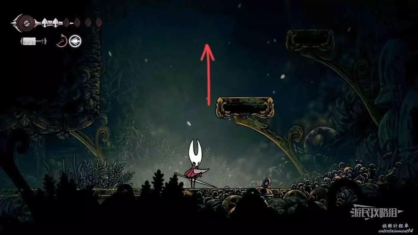 此時會到達蛛攀術所在房間底層,這個技能的位置在此房間的頂層,繼續往右走進入有積水和跳跳花的房間,如果此前結果相關委託,這裡還可以拾取一個花芯。