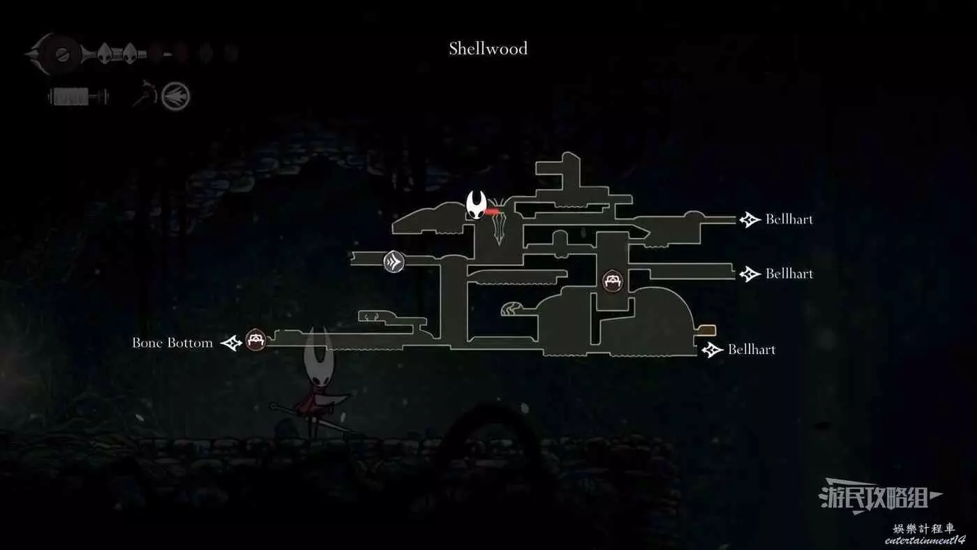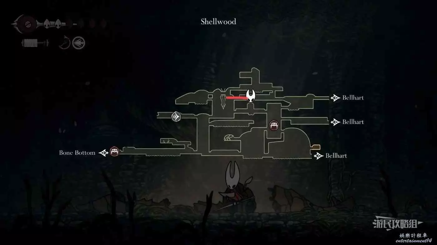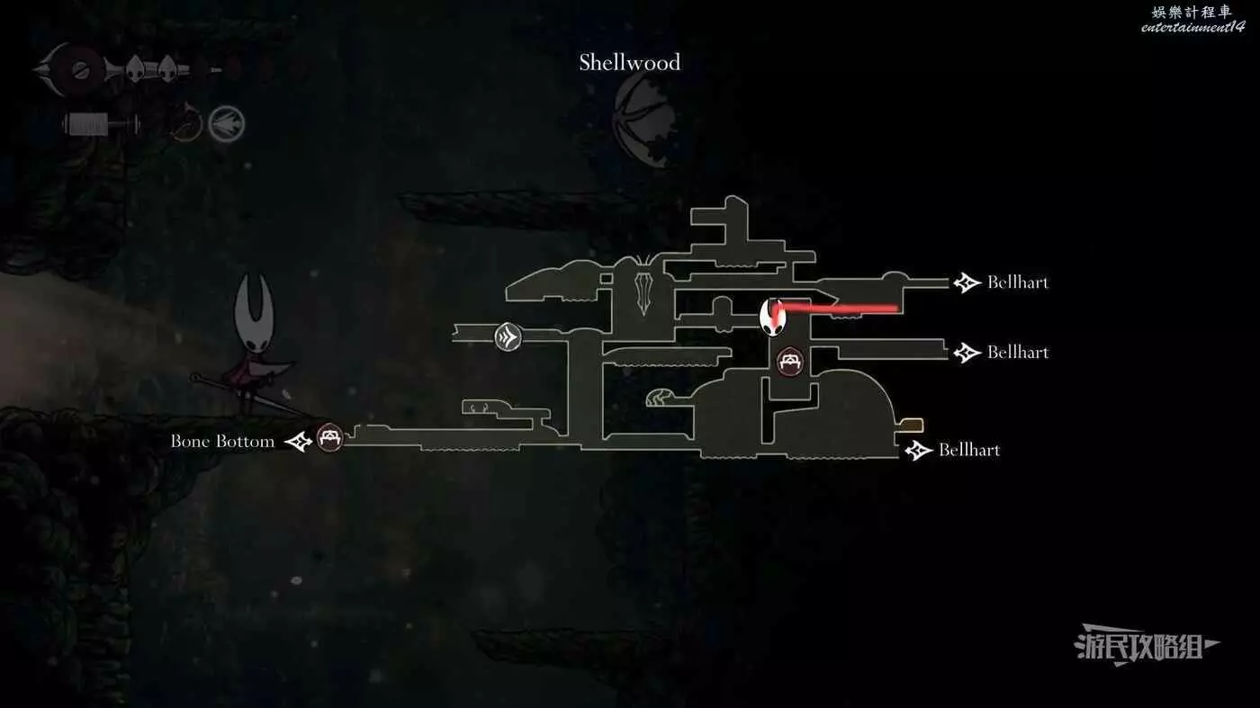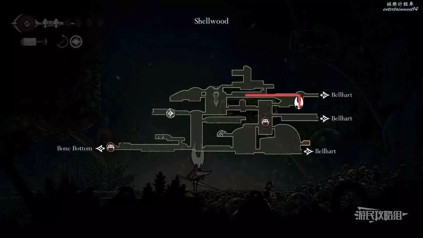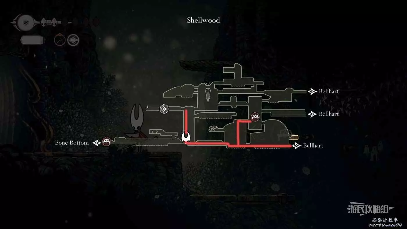 此時會到達蛛攀術所在房間底層,這個技能的位置在此房間的頂層,繼續往右走進入有積水和跳跳花的房間,如果此前結果相關委託,這裡還可以拾取一個花芯。