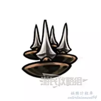 效果:6枚,由密集刀片構成的致命陷阱。觸發後會刺傷接觸的敵人。