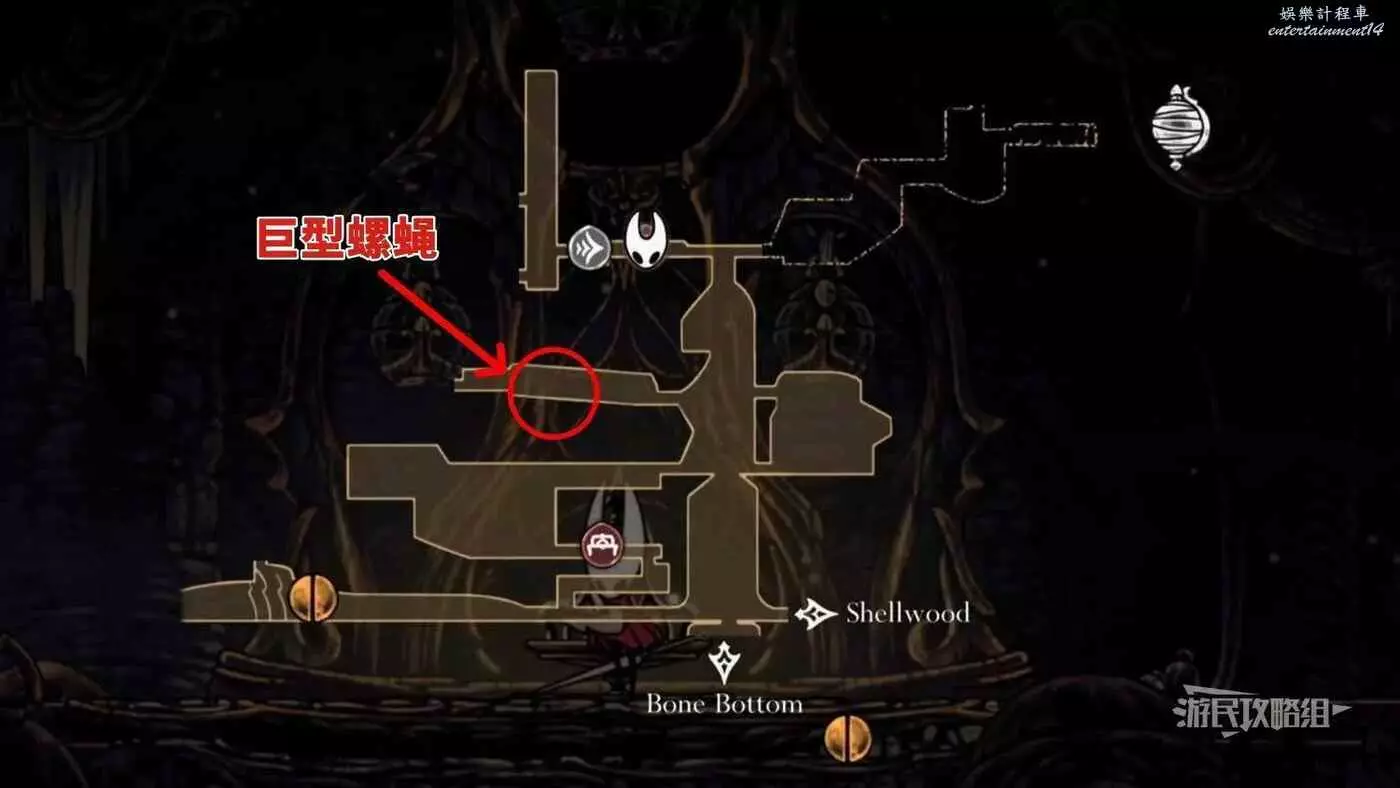 巨型螺蠅為雙BOSS,每只都能造成2格傷害,兩隻BOSS具有協同性,需要注意兩隻BOSS的鑽入和鑽出時機,有時其中一隻會停下動作發射投射物,當BOSS鑽出時會出現塵土軌跡作為提示,擊敗其中一隻後,另一隻會逃離並結束戰鬥。