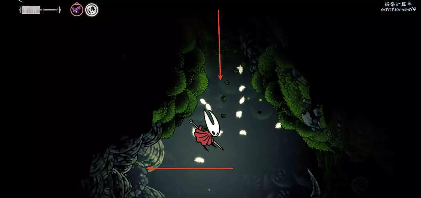 5、順著唯一的路走,跳下來之後擊碎左邊的石頭,繼續往下移動。