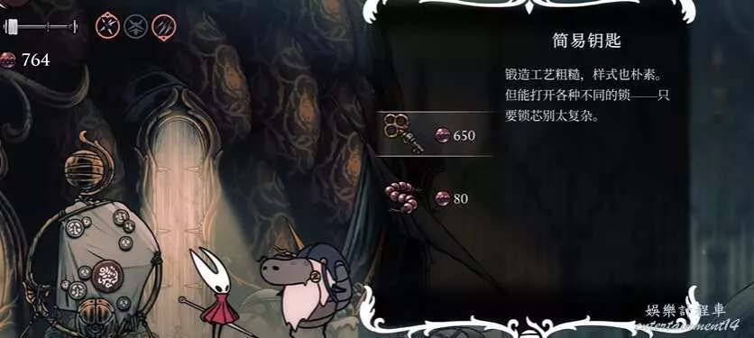 空洞騎士 絲之歌 簡易鑰匙全收集 9 9 月 2025-09-09 廣告 來源:互聯網 簡易鑰匙#1 第一枚在骸㡳鎮商人這裡花費500念珠購買獲得。 簡易鑰匙#2 第二枚在罪途 簡易鑰匙#3 第三枚在卡拉卡沙川 簡易鑰匙#4 第四枚在聖詠殿,這裡需要玩家接取前置任務救出商人 接到任務後,從下圖所示位置往左邊走,殺怪救商人朱比拉娜。 之後再回到接取任務的地方(庇護所),就能看到商人朱比拉娜了,交談花費650念珠購買簡易鑰匙。