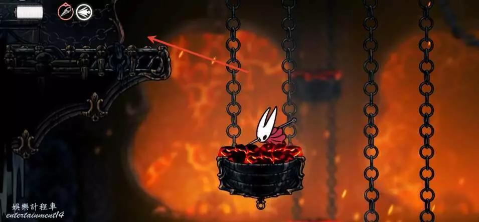 從所示位置出發,越過左邊的火爐障礙物。