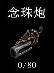 冒念珠的加特林噠噠噠。不是投射物,單發傷害4彈匣80,裝填要花80念珠,彈夾價格按照碎片包計算為128,是其它工具的1.6倍。總傷害320,性價比較低。另外有兩個小細節,沒有子彈時能看到彈匣是空的,大黃蜂換方向射擊會從上面繞一圈換。