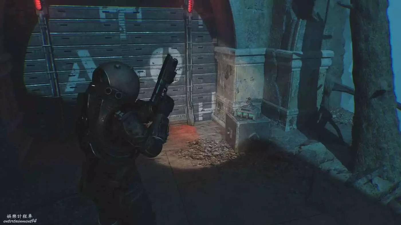 到達b站大廳後,右手邊捲簾門後牆上(附近就是存檔點)