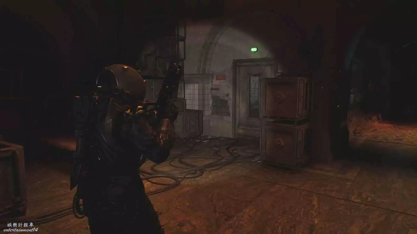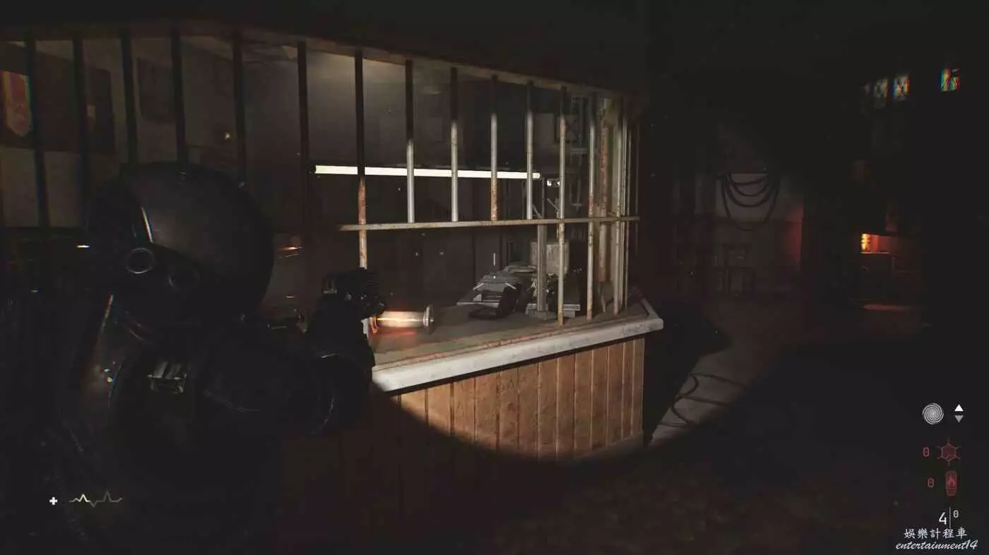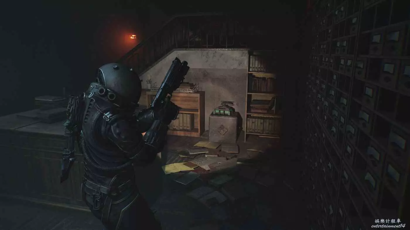 穿過一處兩個書架間的縫隙後,先不要前往前方的引力牆,左手邊有兩扇門。去左邊門後射擊油罐打開另一扇門,到達下一個存檔點。
