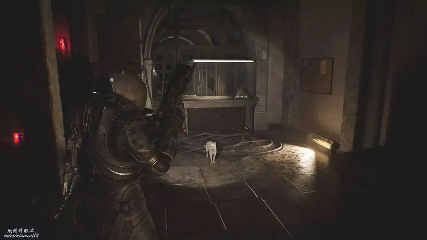 前方存檔點,桌上(此處存檔點能看見貓,但是現在無法抵達)。