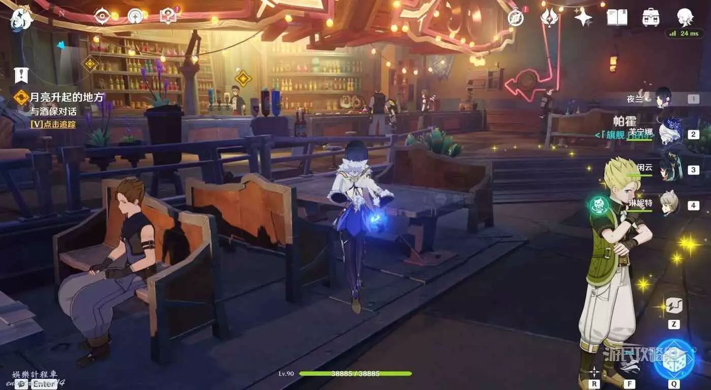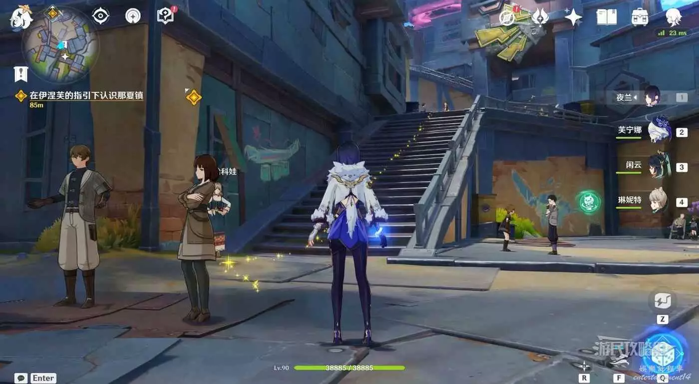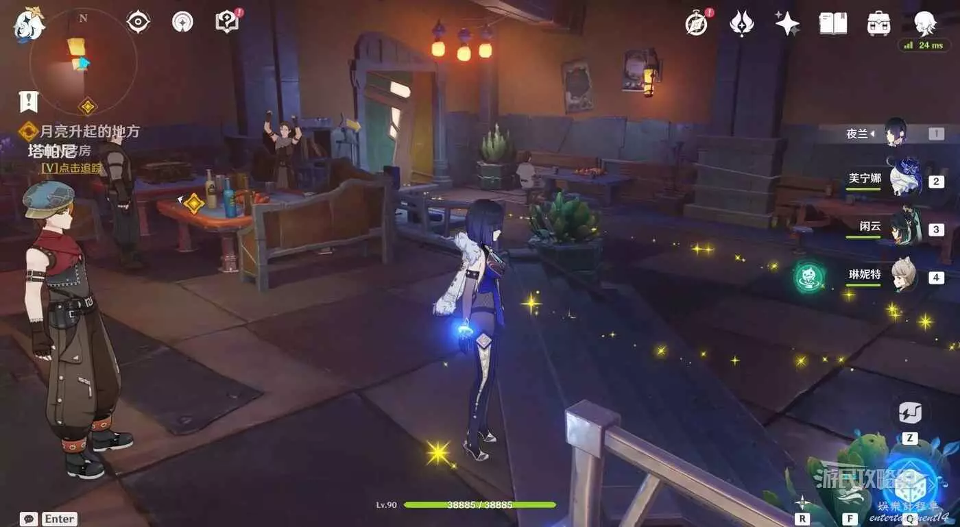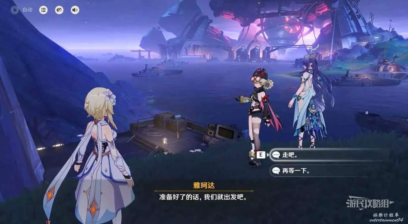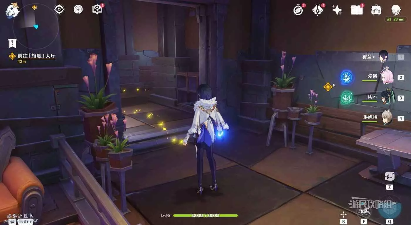 往下跳一層繼續觸發劇情。繼續與菈烏瑪一起吃晚飯。注意前方會觸發與愚人眾的戰鬥,記得提前調整好戰鬥陣容。