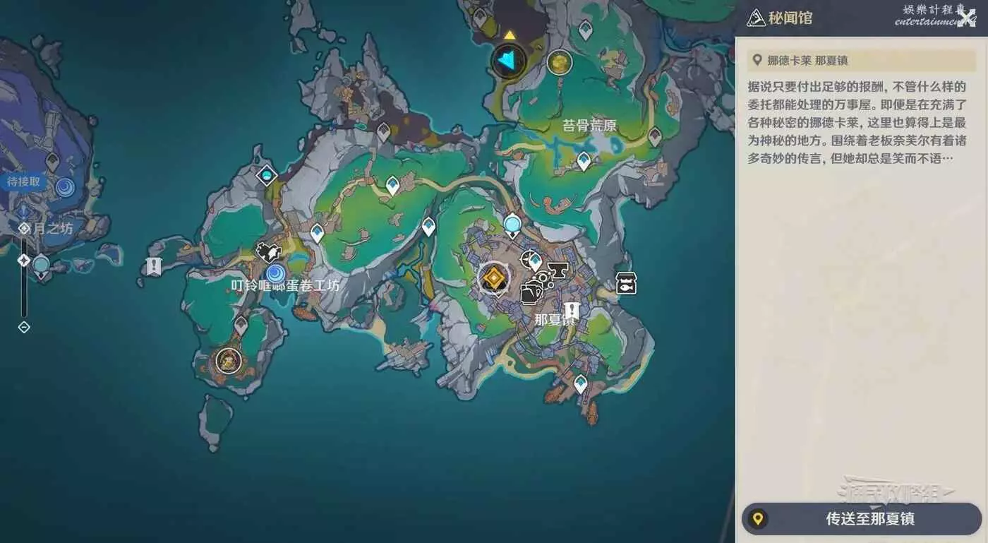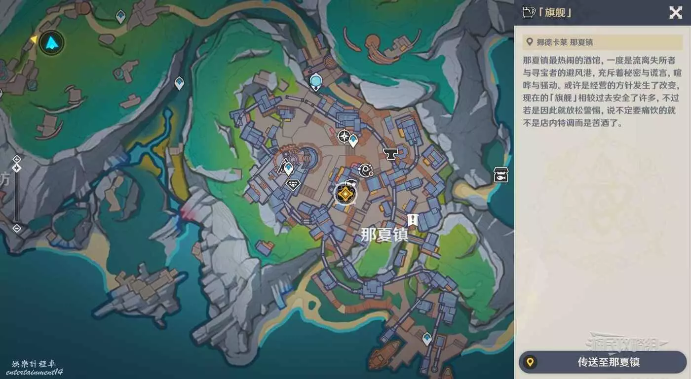 劇情結束後,自動來到挪德卡萊倫波島那夏鎮最下方的傳送錨點,繼續跟隨任務目標前進即可。