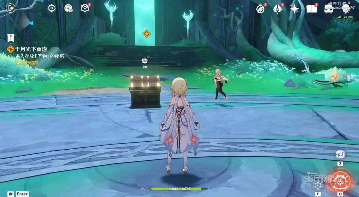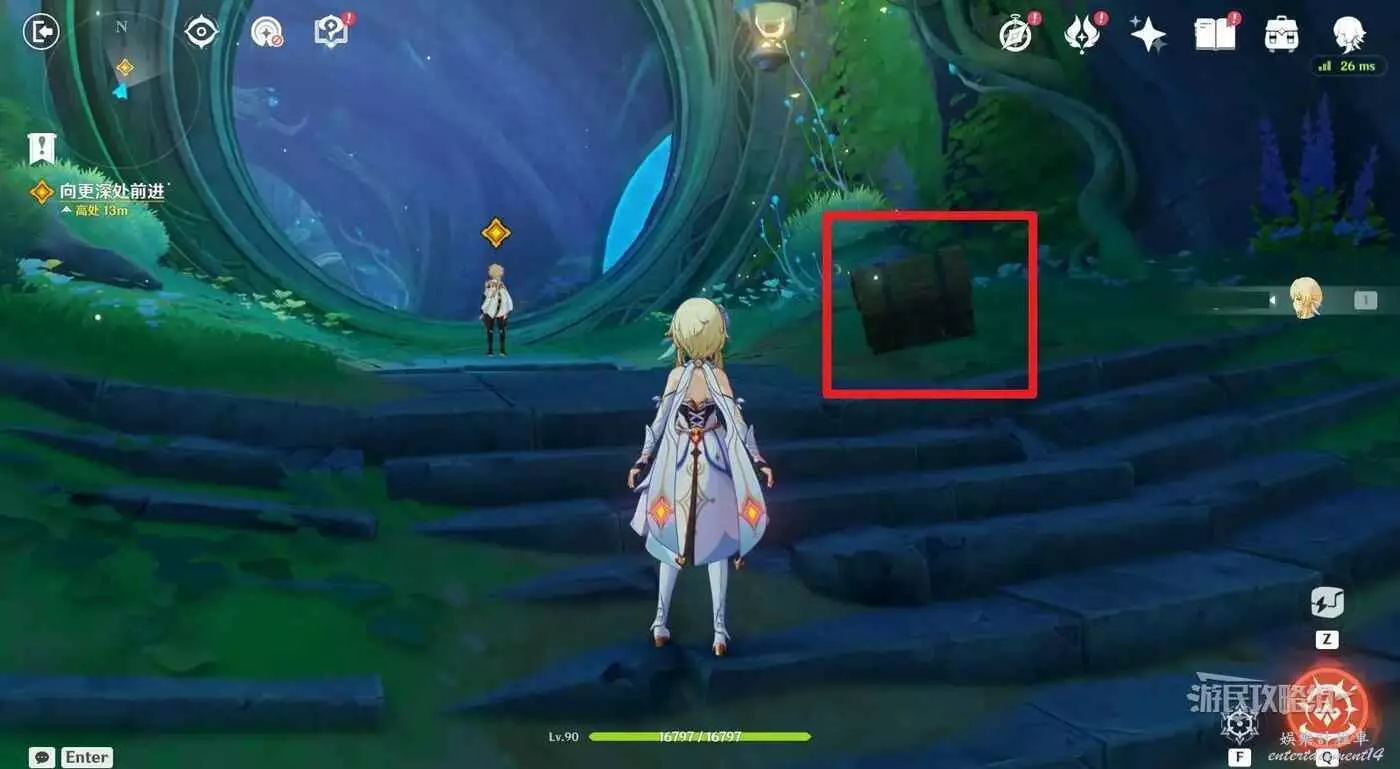 看完對話後,跟隨月靈前進,前方需要開啟普通寶箱,此寶箱為劇情必開,記得做好標記。