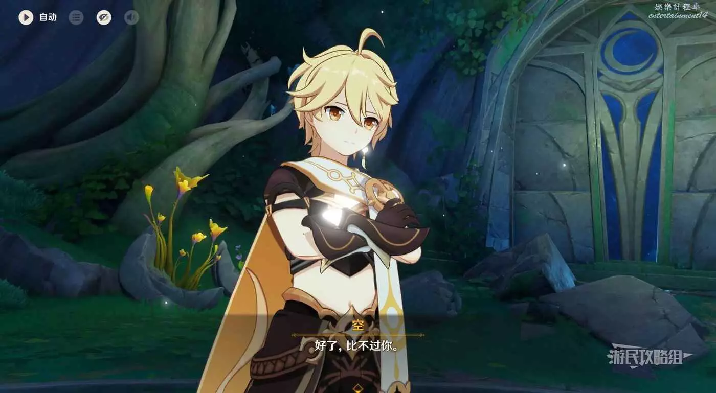 看完劇情後前往旗艦大廳吃飯,繼續與派蒙對話。