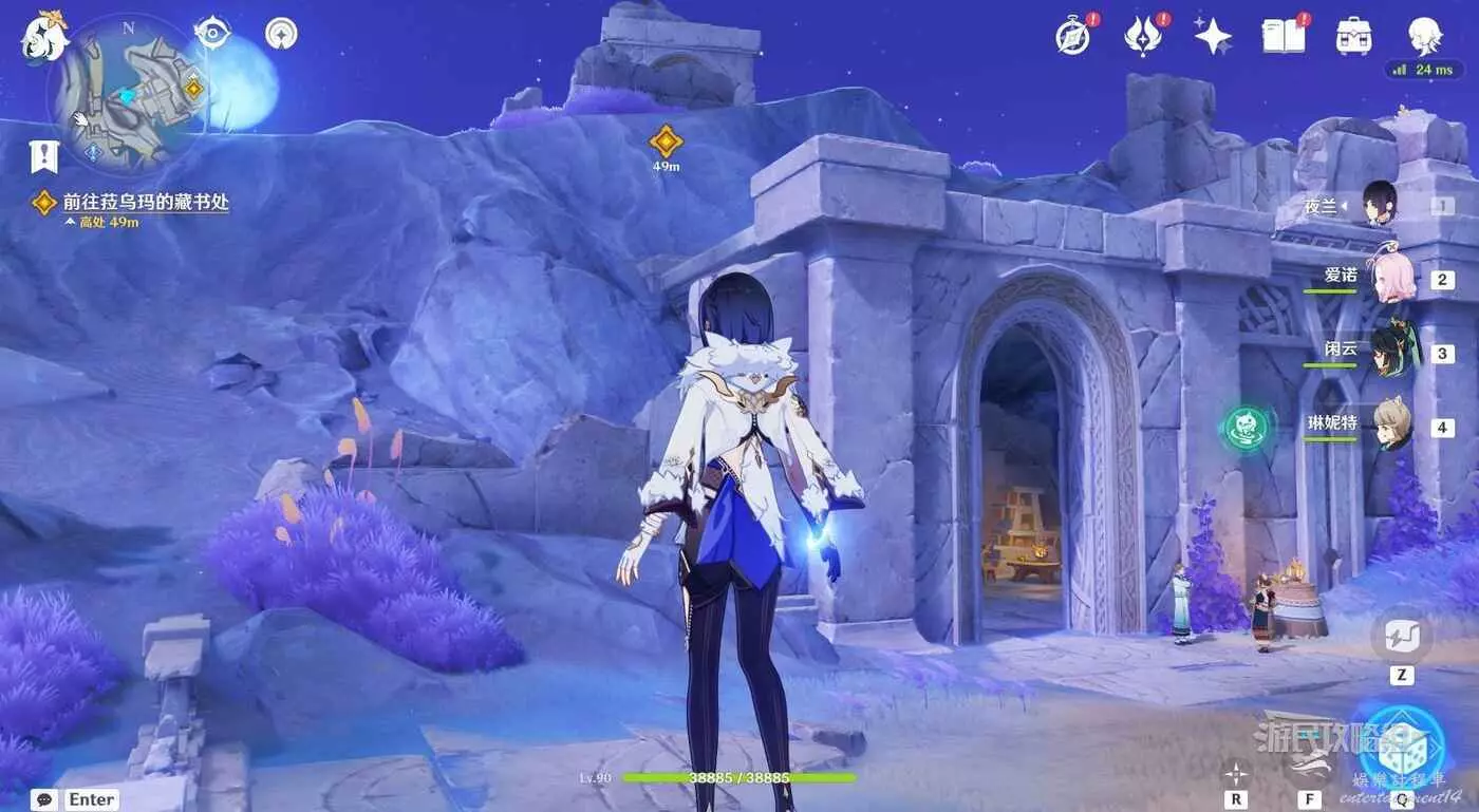 看完劇情後,離開秘聞館。將遊戲內時間調整至晚上19-24點,傳送到沐光之台傳送錨點,前往任務目標位置。