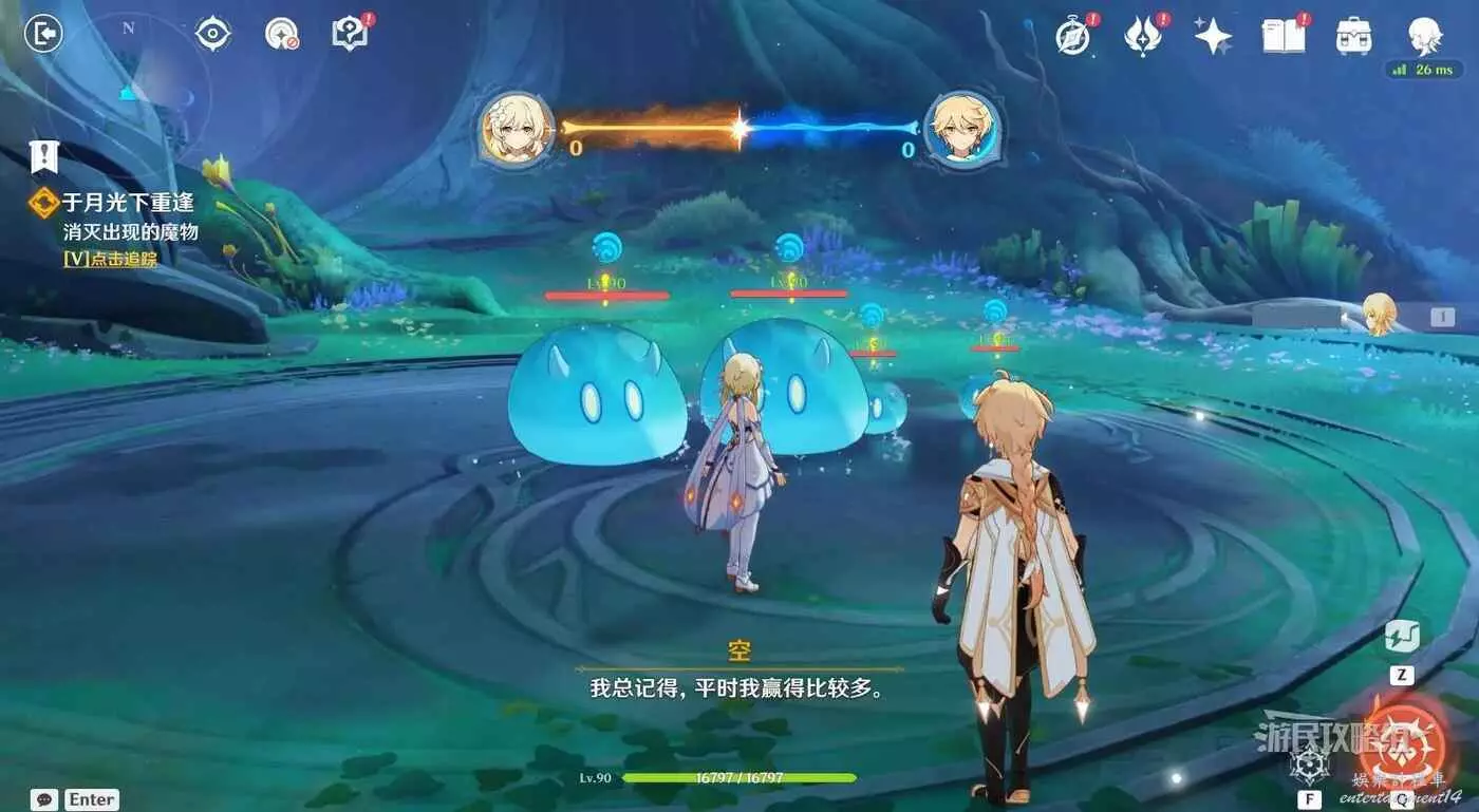到達下一個地點,需要與血親比試擊殺敵人的數量,敵人為水元素和冰元素。