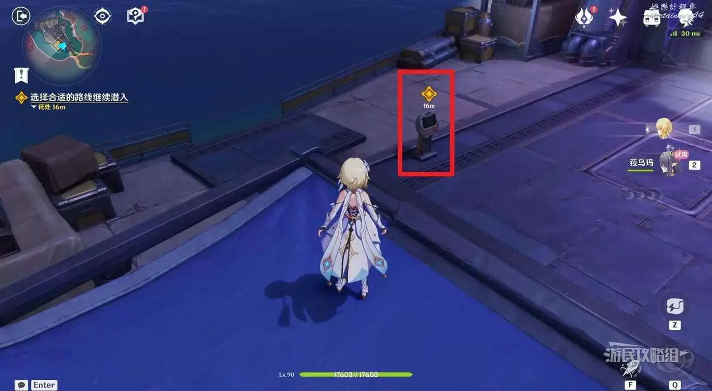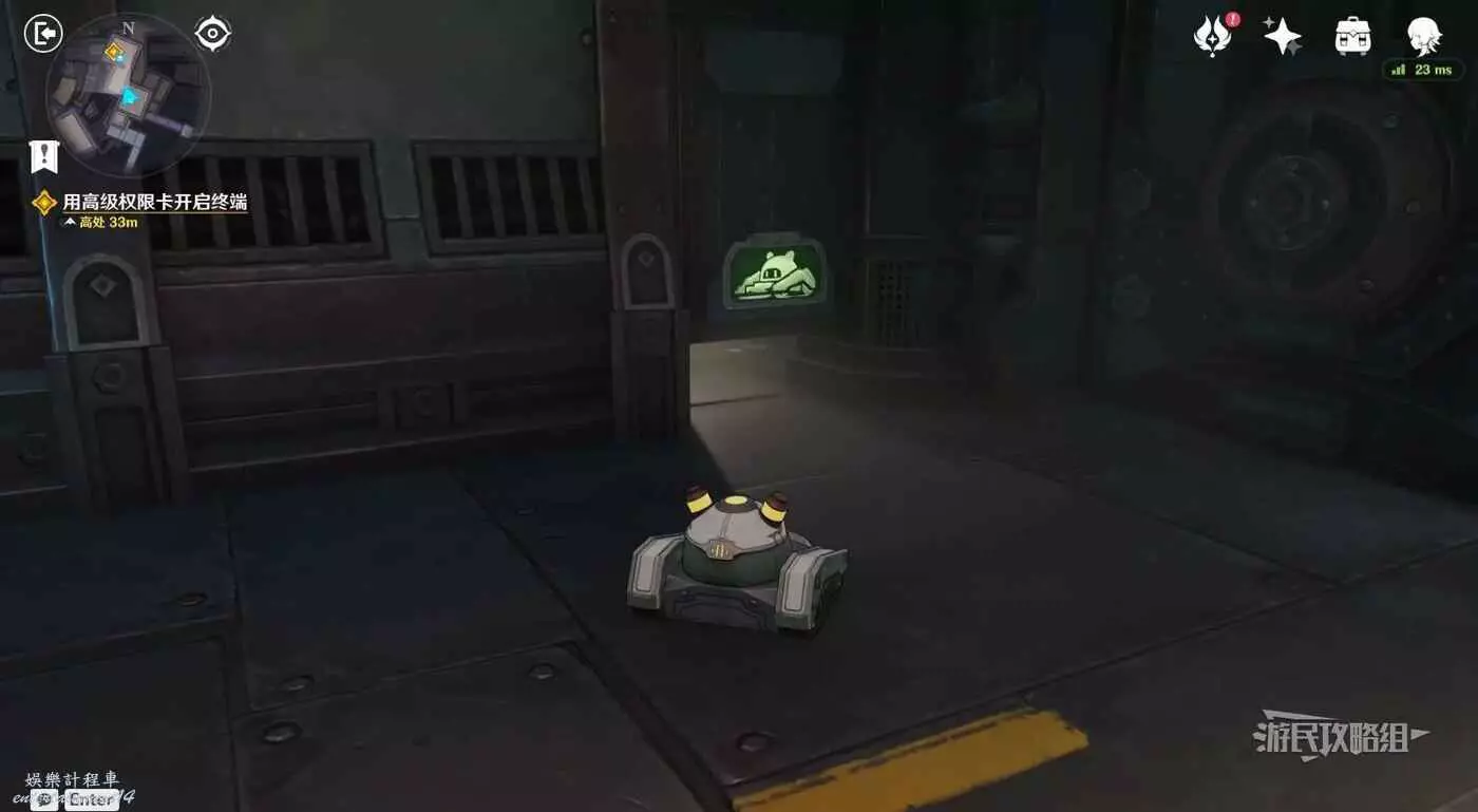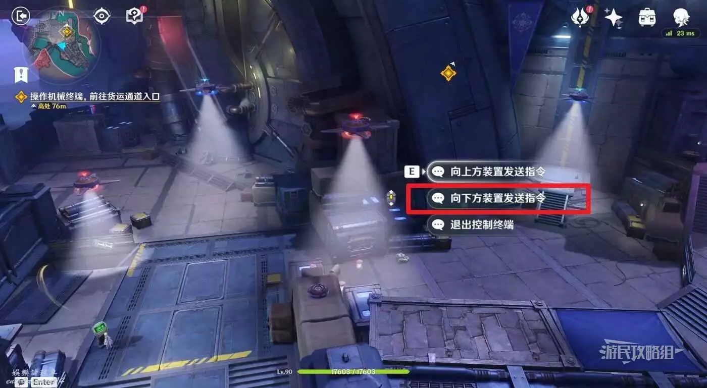 注意畫面左側紅色監視器下方還有一個普通寶箱,需要按兩次【向上裝置發送指令】才能過去拾取,任務完成後將無法再次獲得。
