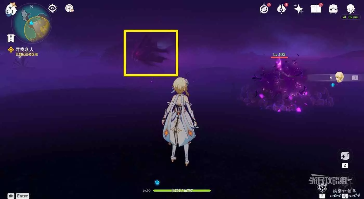 清除狂獵後進入環境,朝遠處飛的紫色球走,出來的怪可以不用管,看不到球再清怪。