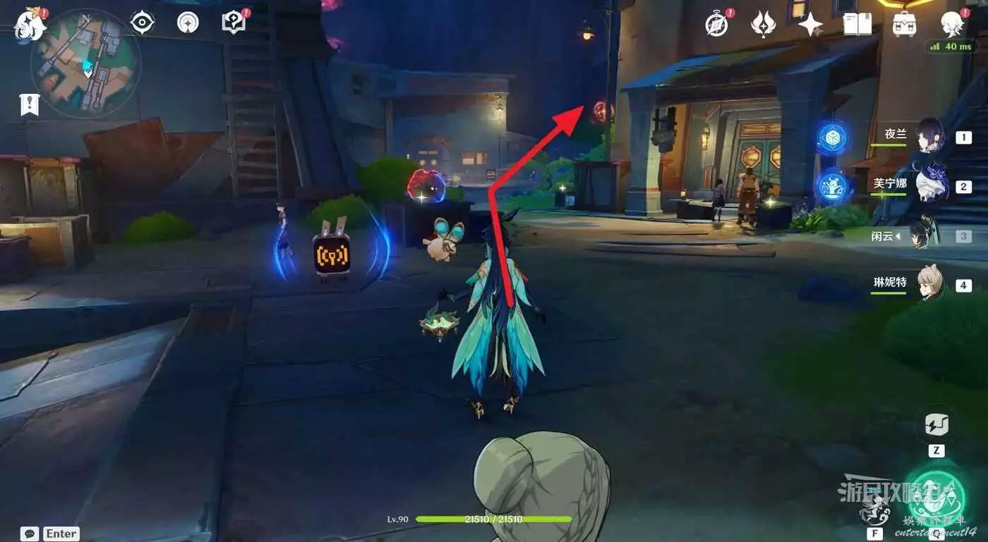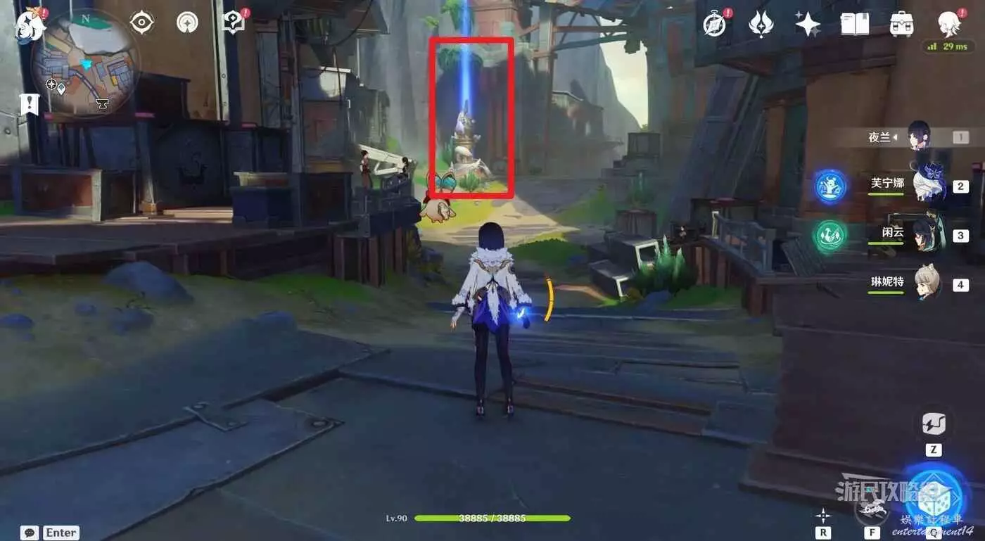 上坡之後在左前方房子前可以看到一個傳送錨點,可以順路啟動。在錨點前往右側走。