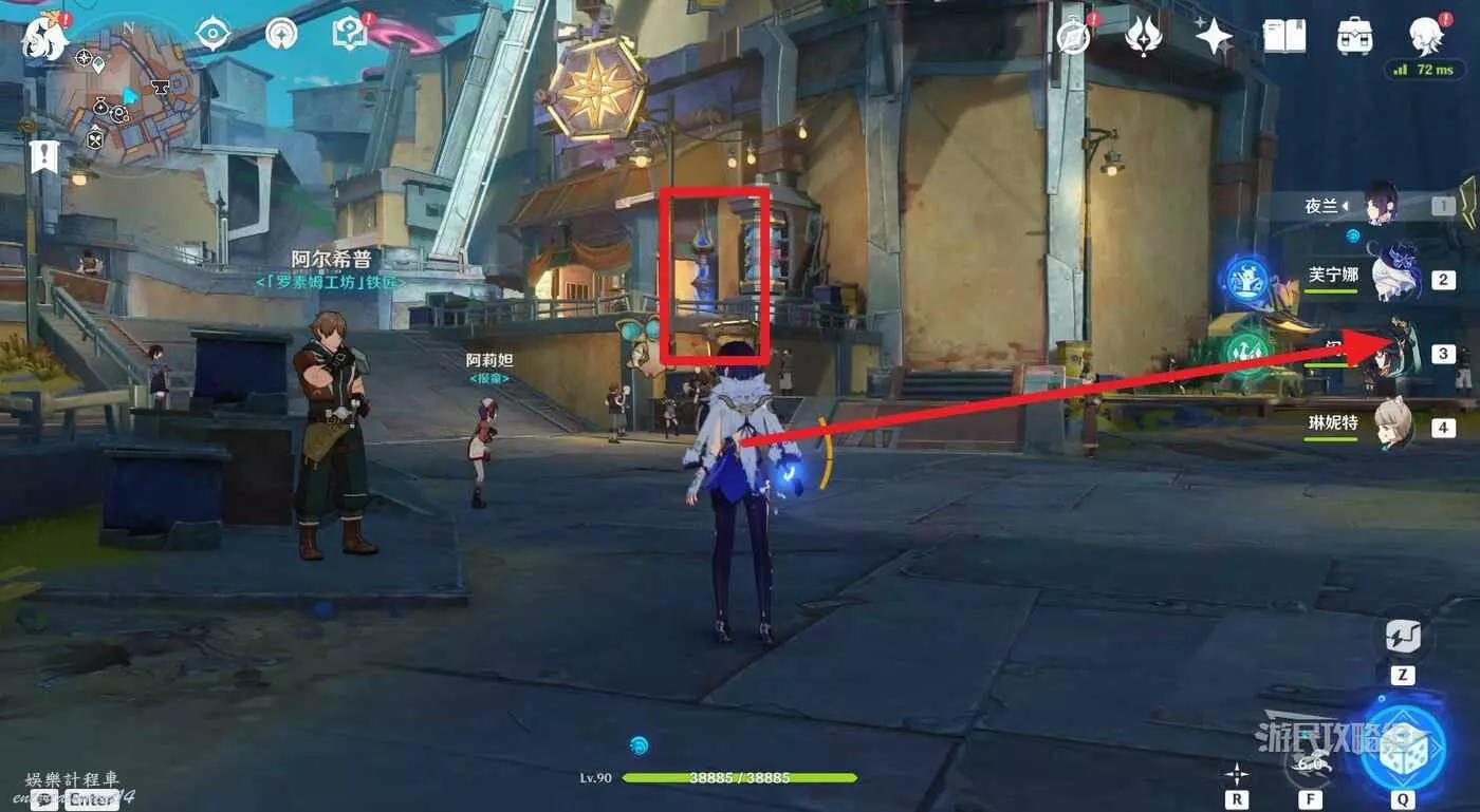 ※接取魔神任務空月之歌第一幕可以跟隨劇情自動到達此位置,後續可以一邊做任務一邊開啟七天神像。