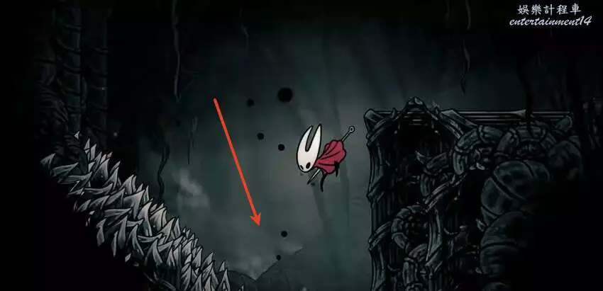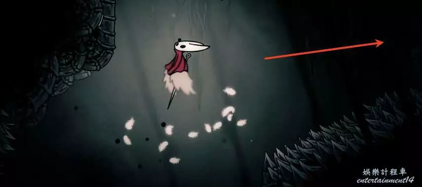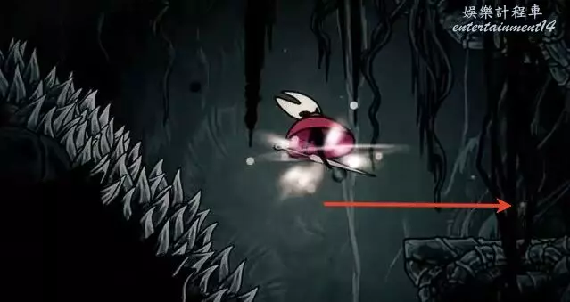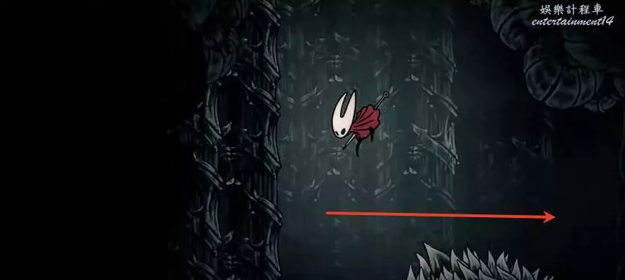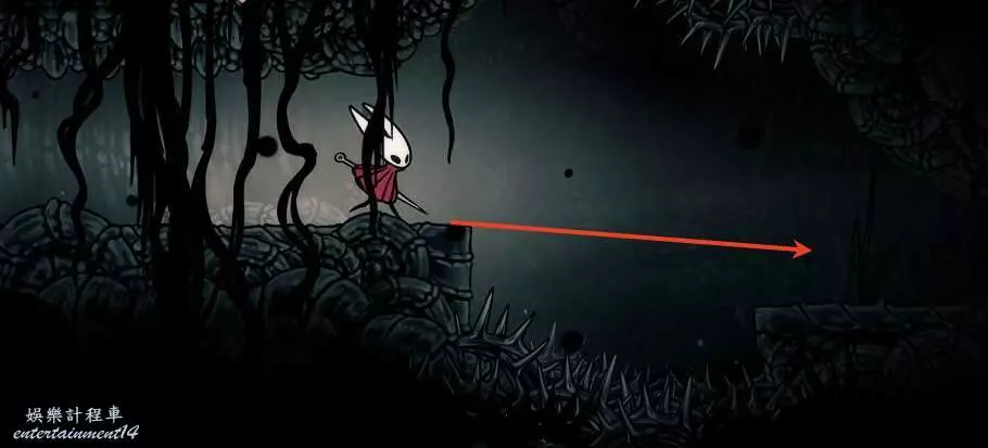 2、來到圖1的位置跳下去,往第一個向右的位置走,越過荊棘到圖三的平台,往右走。