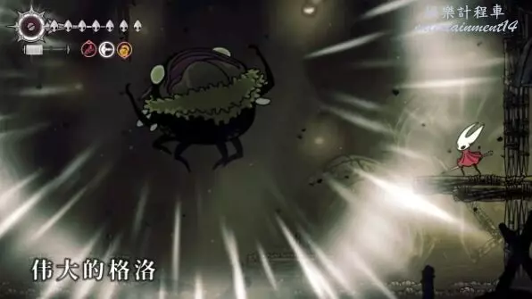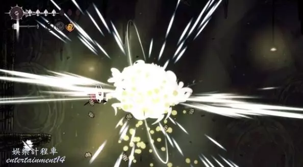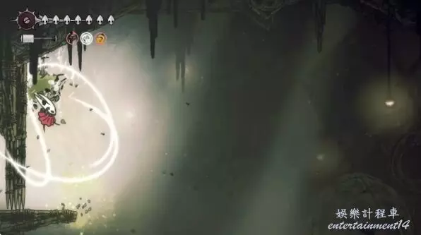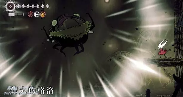 這一招是類似小騎士的發波攻擊,有非常明顯的前搖,如果察覺到boss要發波,儘量判斷好發波的高度,可以在左右兩邊的牆上爬行來改變自己的高度從而輕鬆躲避。