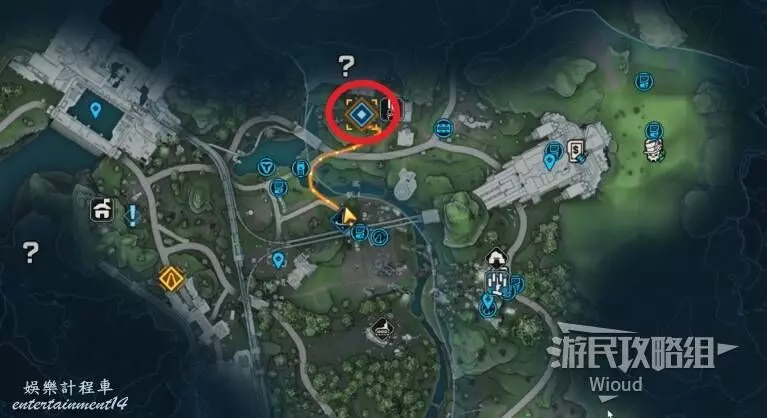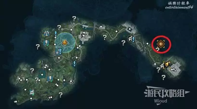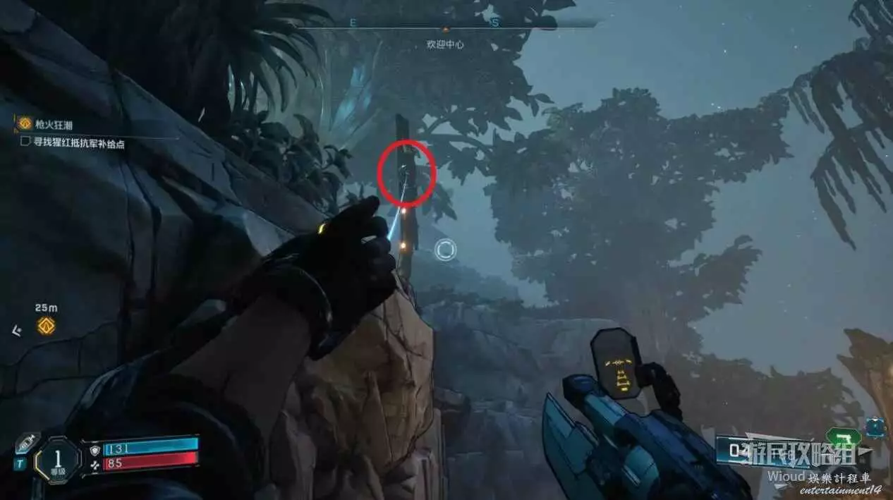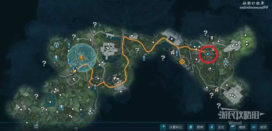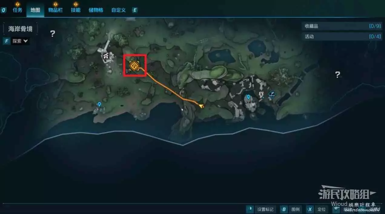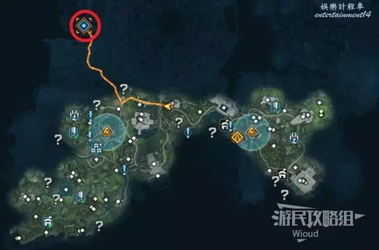 完事需要收集三個零件,打開地圖先去最左邊的指引點。