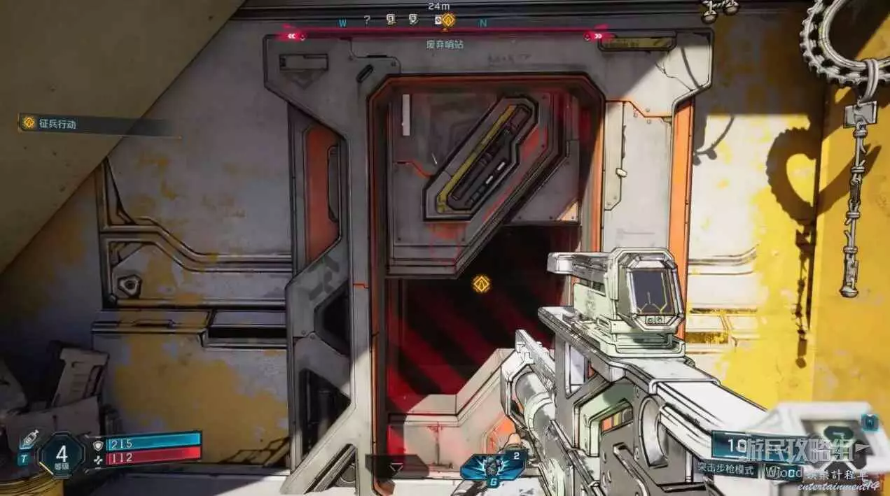 先與電梯門互動,第一次固定失敗,走到右邊士兵屍體旁與其互動,可獲得【電梯訪問權】。