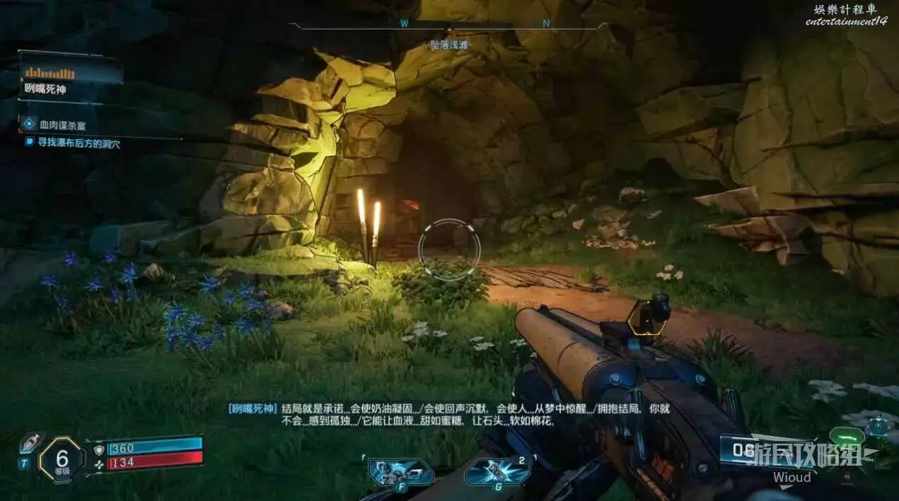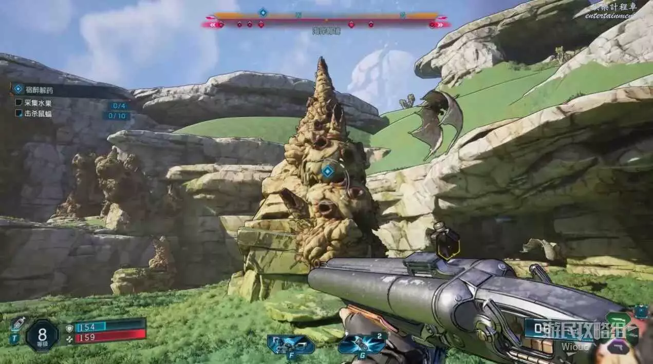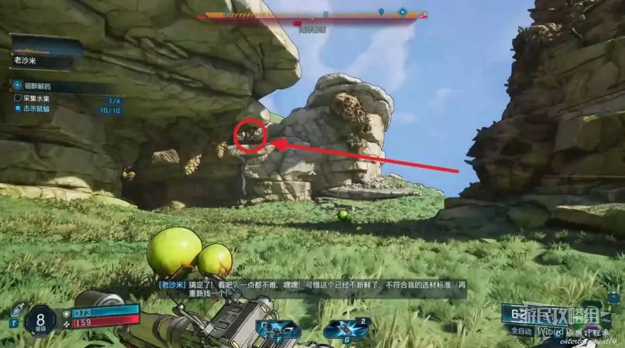 目的地有一個類似巢穴的柱子,附近飛有許多鼠蝠,全部幹掉完成第二個目標。