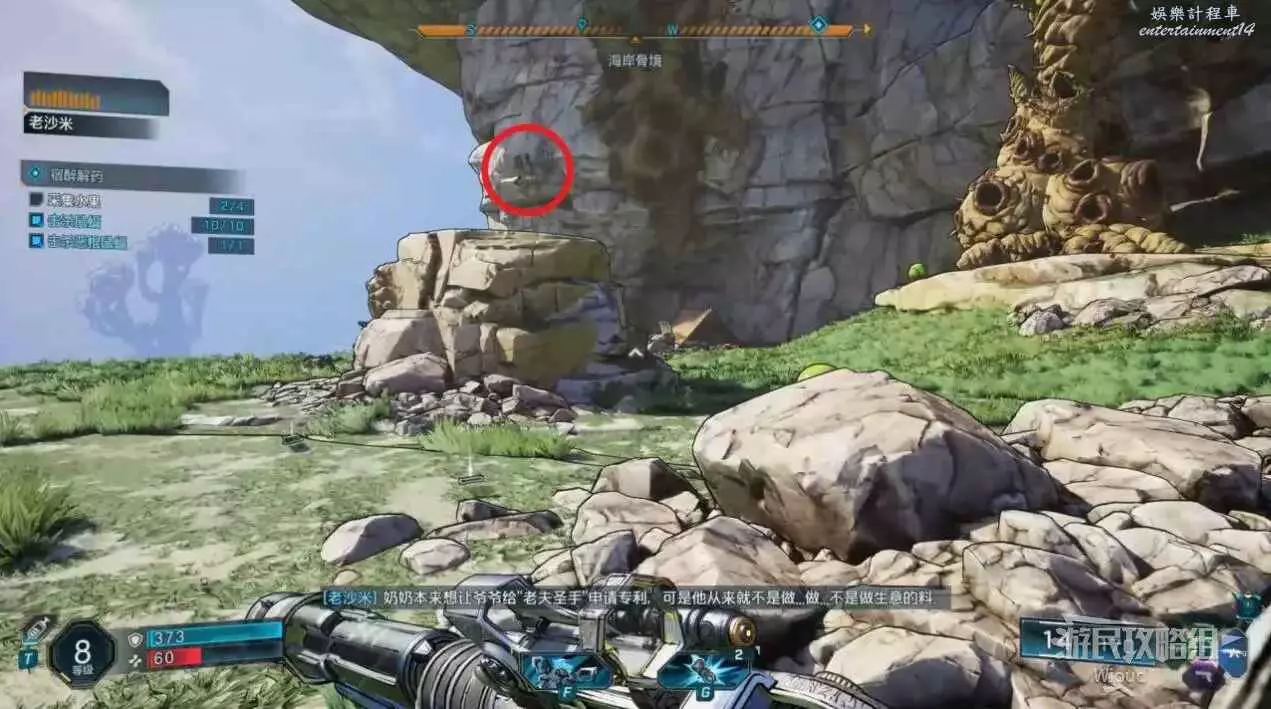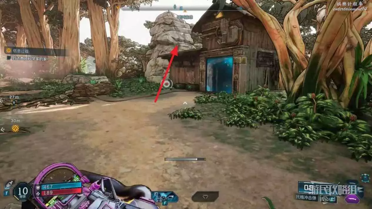 左手拿著回到老沙米的位置,途中會全程佔用左手,注意鍵鼠不要因為瞄準而把石頭扔出去,不然還得回到泉眼重新找一個紅色石頭。