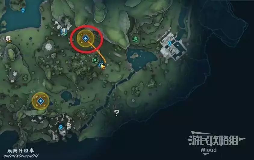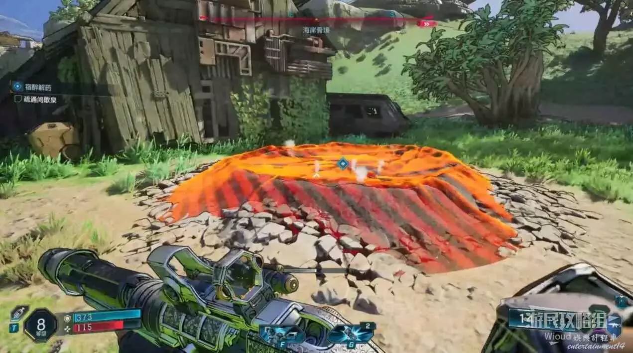 目的地有一個非常明顯有紅色高亮的泉眼,上去使用落地猛擊使下面的東西噴湧而出。