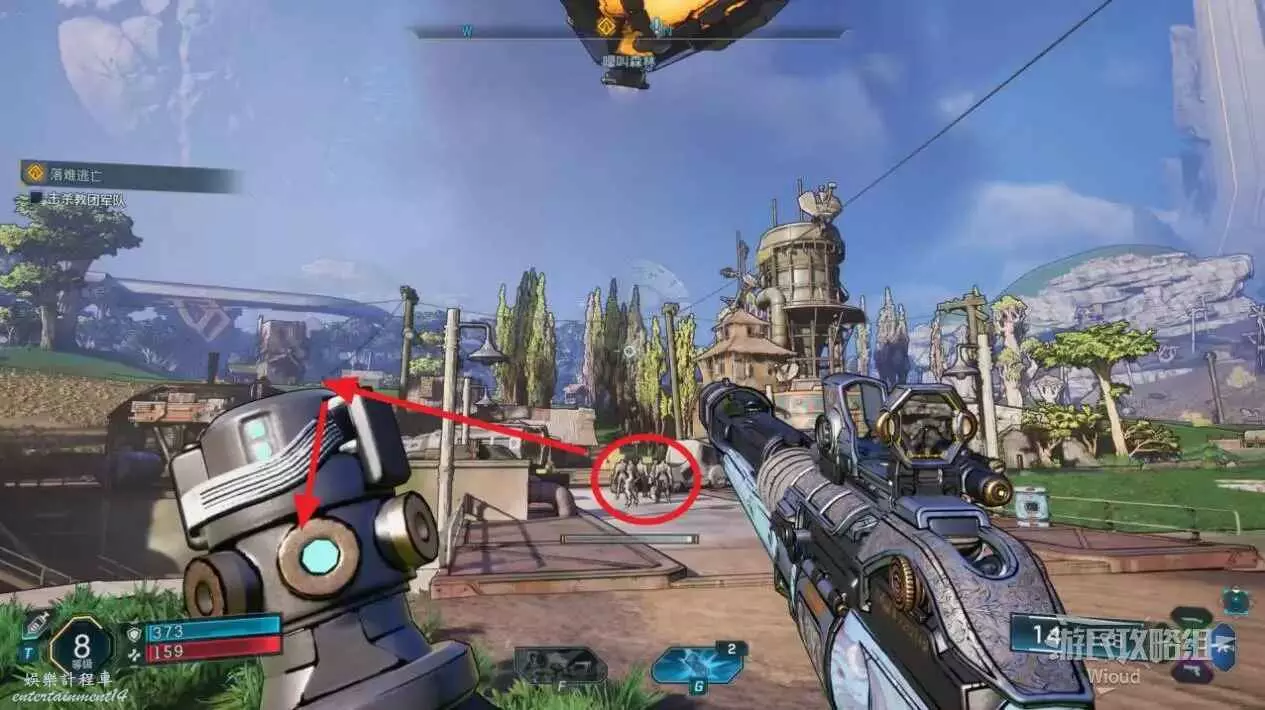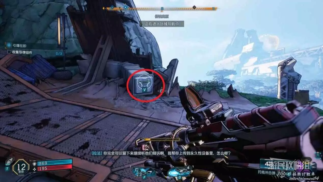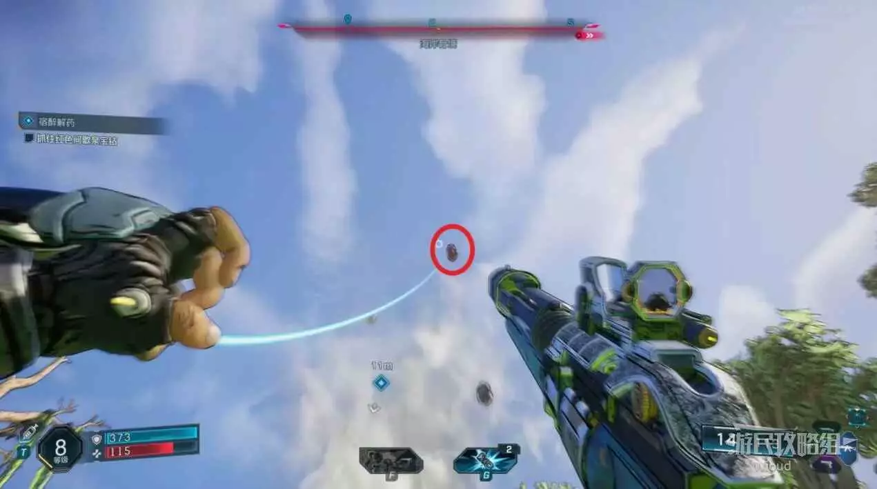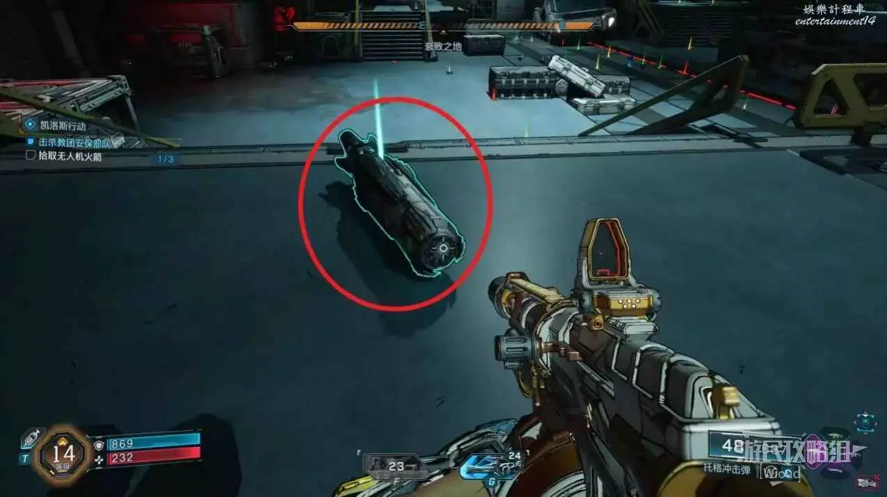 後續出現一波敵人,擊敗這些敵人會掉落物品【無人機火箭】,任務要求我們三個火箭。