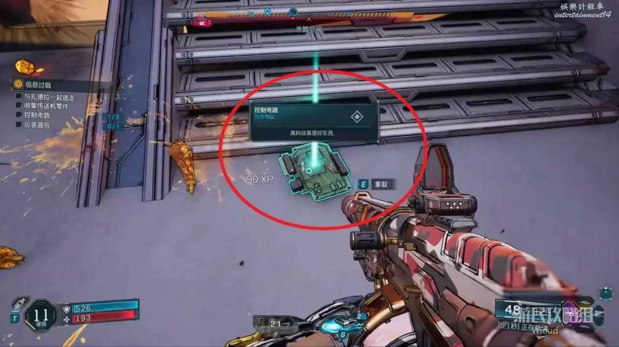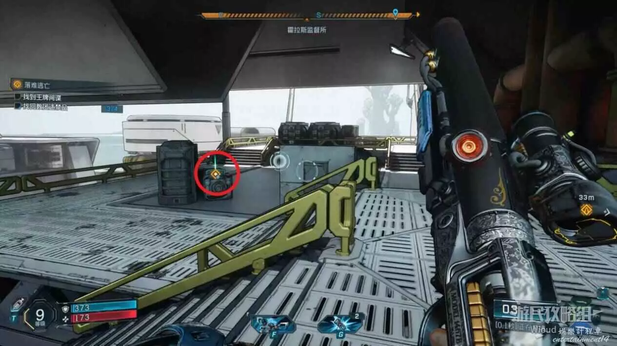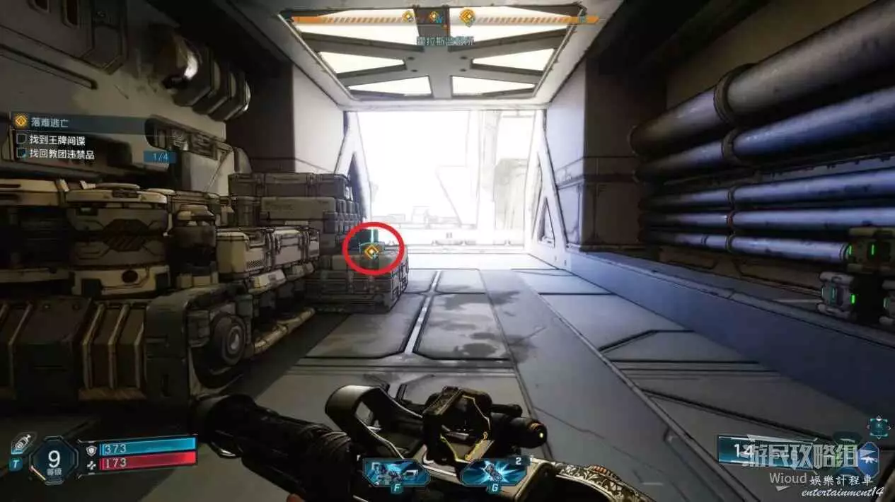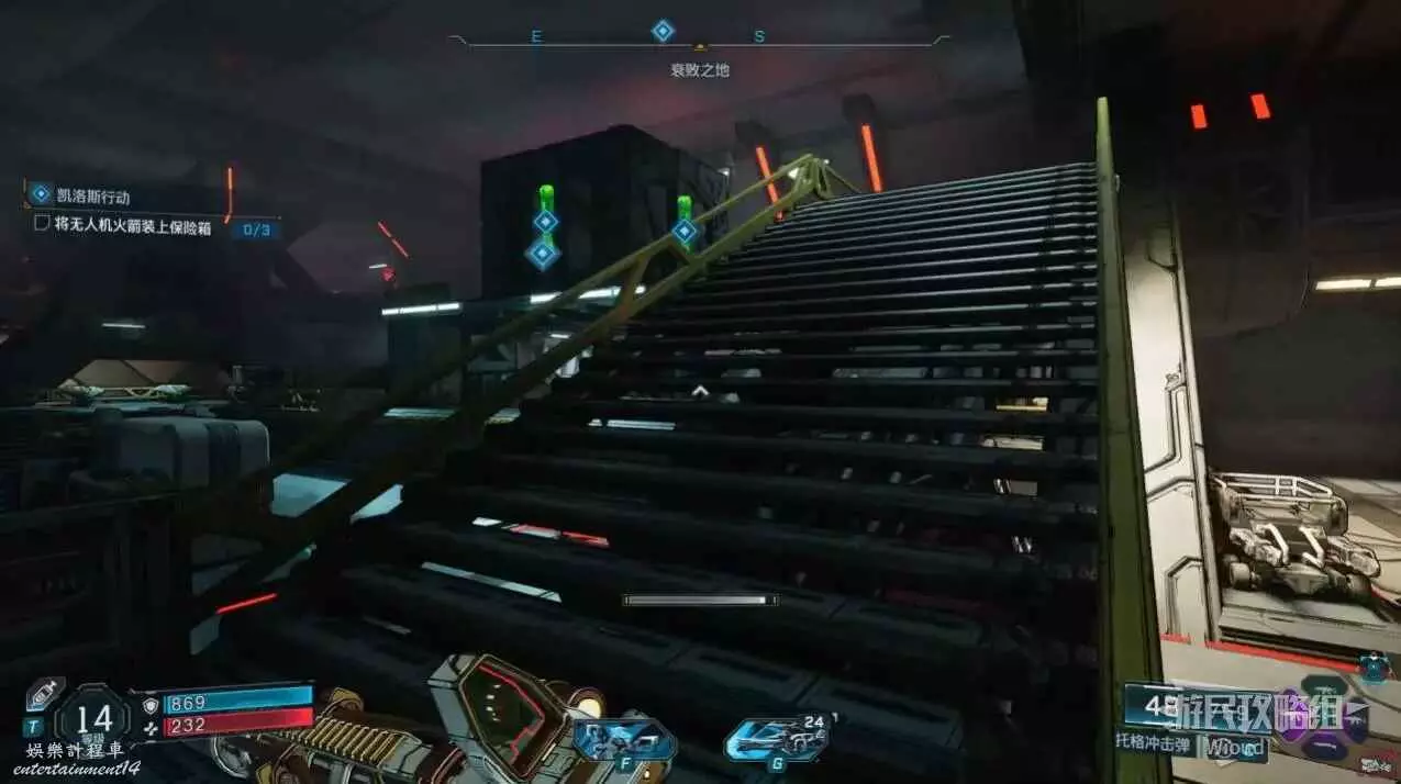 直到乘坐一個電梯到屋頂,這裡出現兩個新目標,收集【控制電路】和【應答器包】。