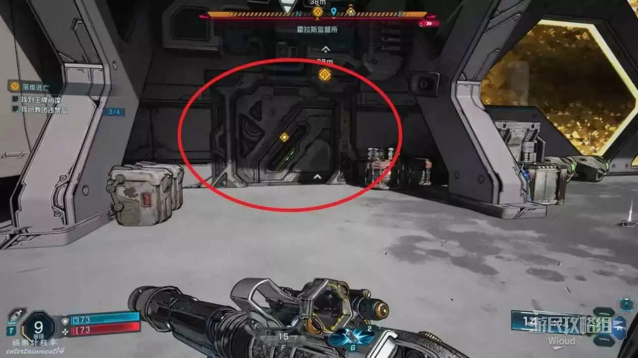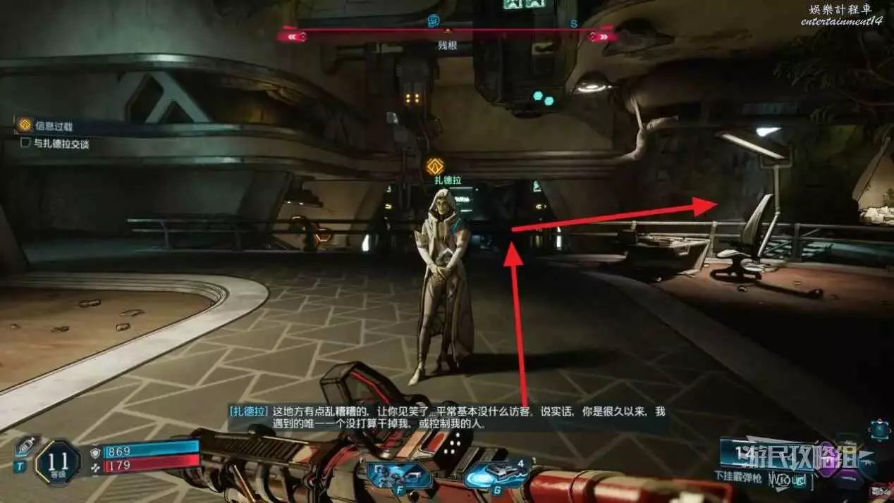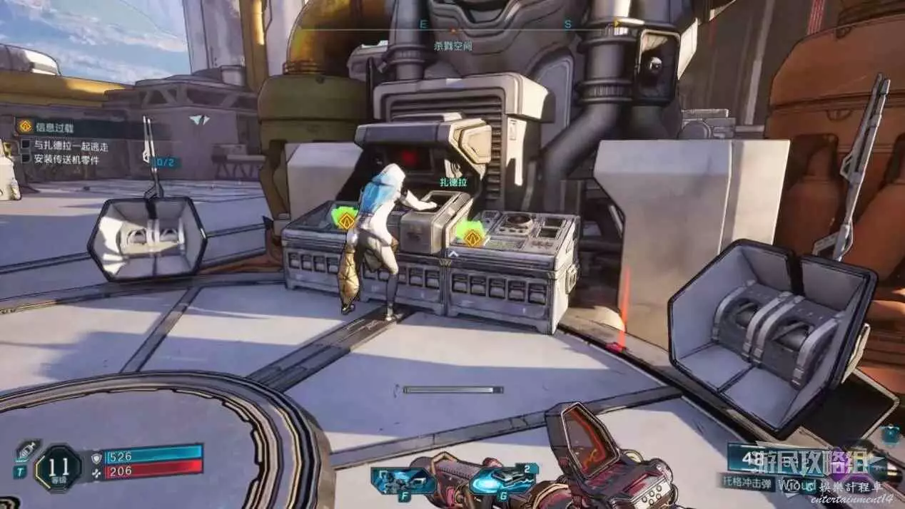 回到入口接紮德拉,跟著她乘坐電梯上去,被一個黃色能量門堵住後,等紮德拉自動解開。