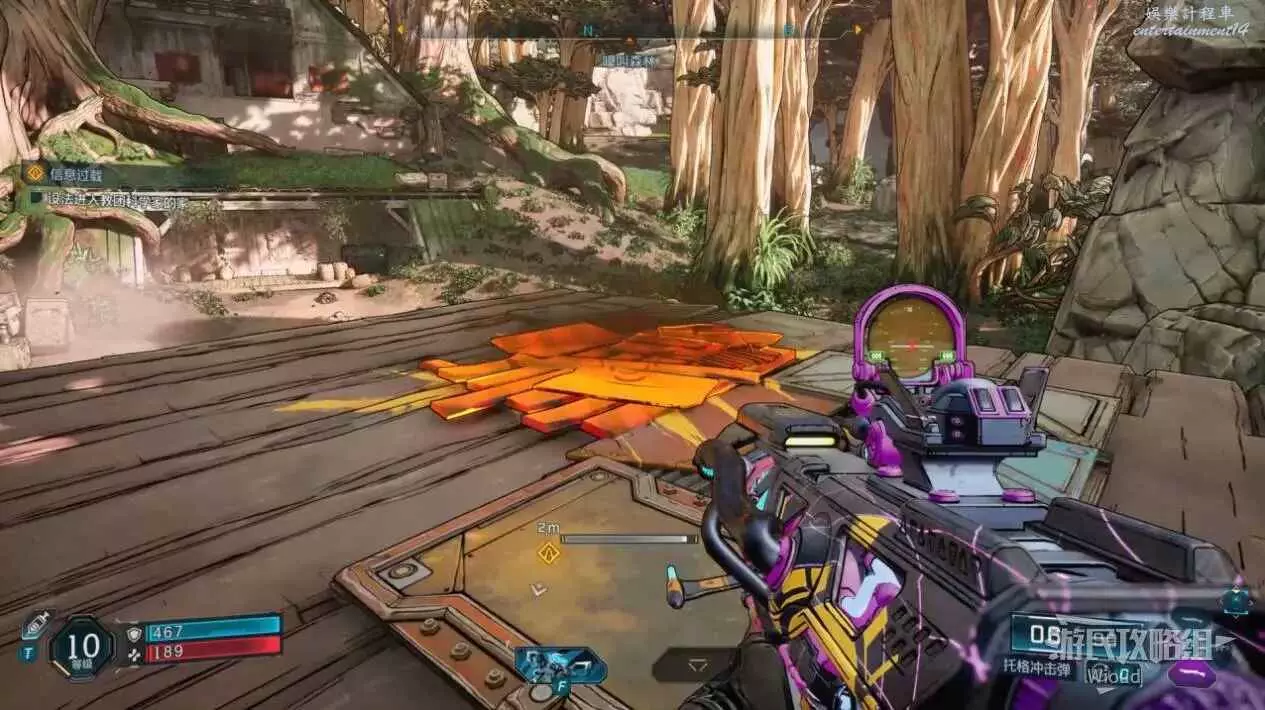 往地圖右邊走,進入營地會消失一個指引點,完事掃描跟著指引線條找到BOSS【大朗】。