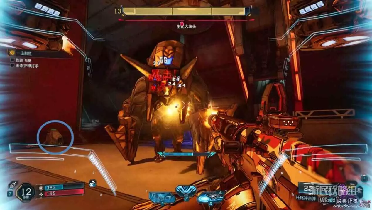 回去再拿一個炸彈,直走到對面大門將其炸開,沿路往裡走不遠觸發新的BOSS戰【生化大塊頭】。