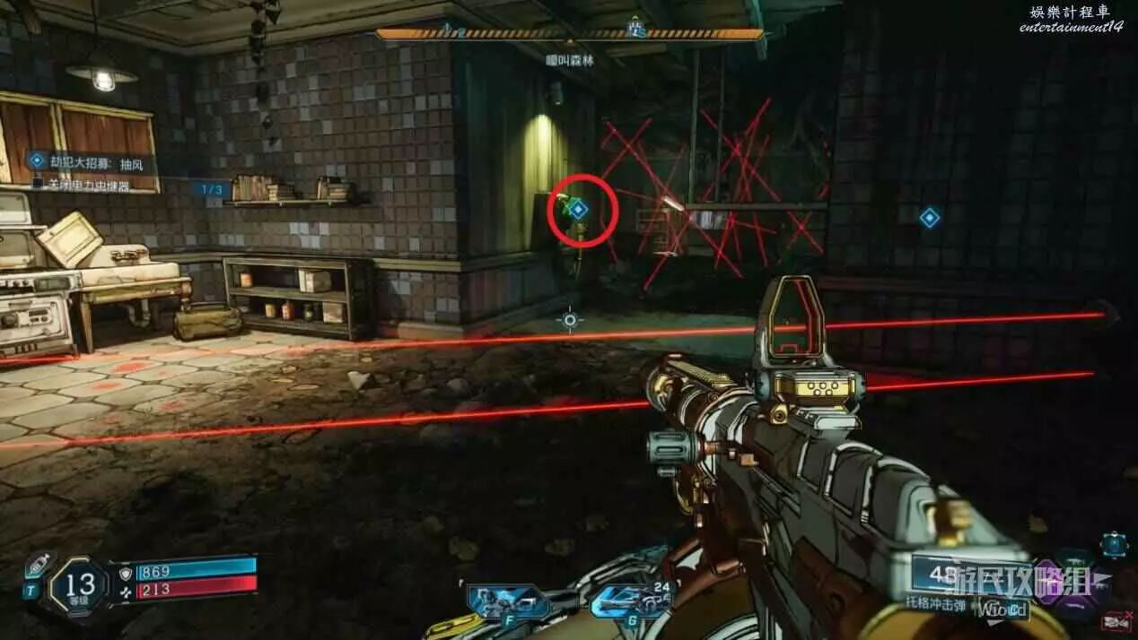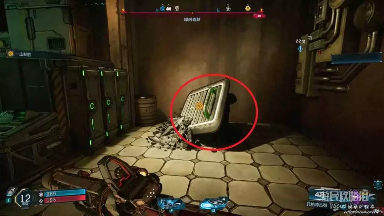 清怪後,與中間機器旁的電腦互動,右邊紅圈處會出來一個“炸彈”,只要玩家拿起來就會開始計時,計時結束會立刻爆炸。