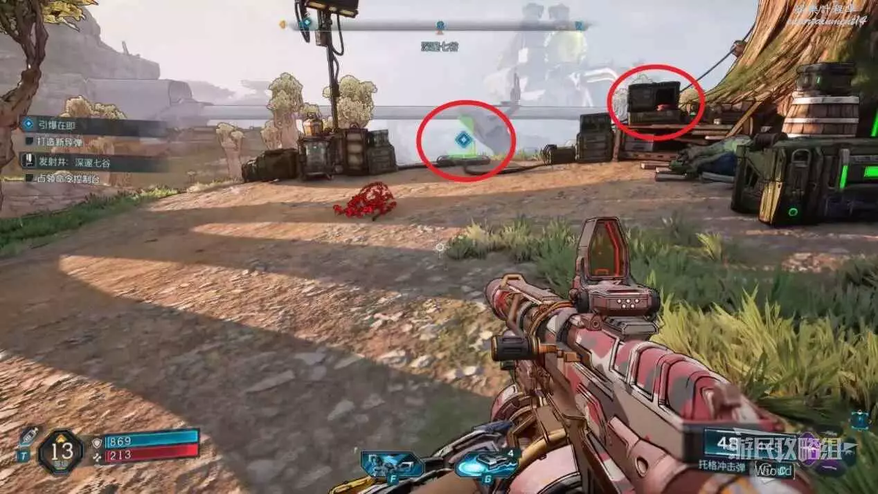 破壞發紅的雜物即可找到任務發佈人,如果敵人沒有清理乾淨無法破壞這裡的雜物。