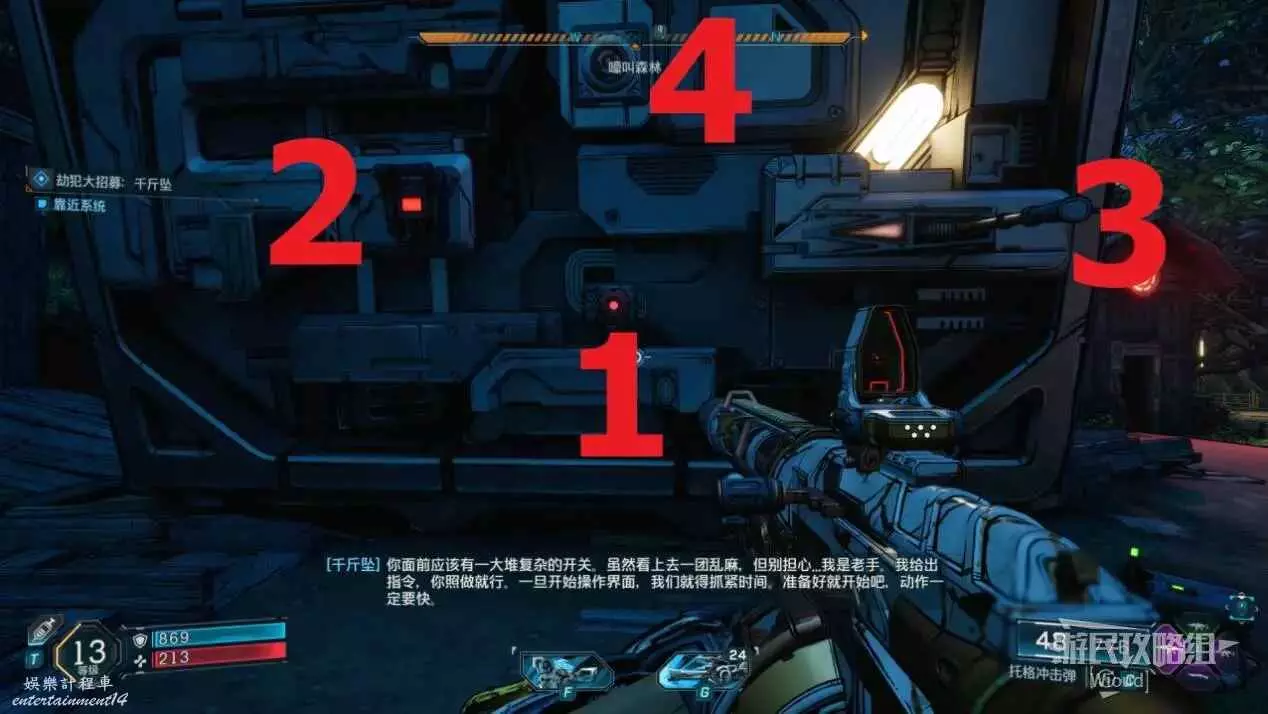 這個小遊戲需要跟著NPC的指令和相關開關互動,開關一共有四個: