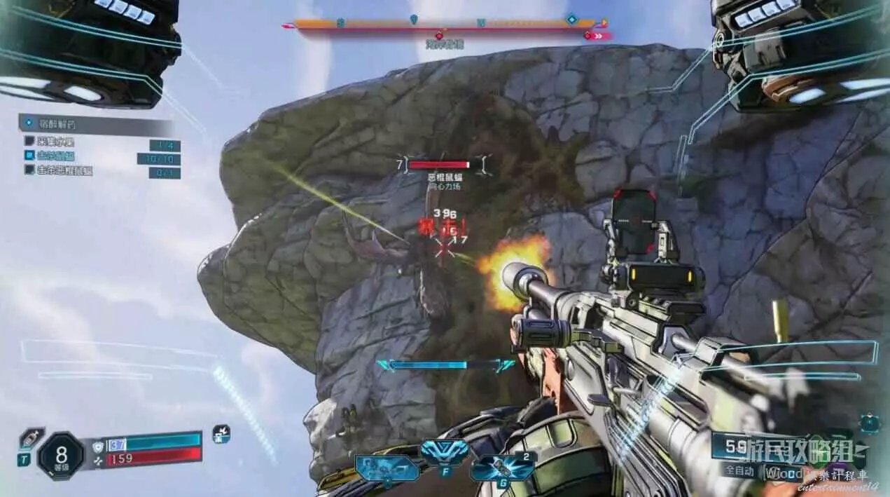 這個BOSS有類似之前大門的那種材質,當全身覆蓋材質時無法直接用武器造成傷害。