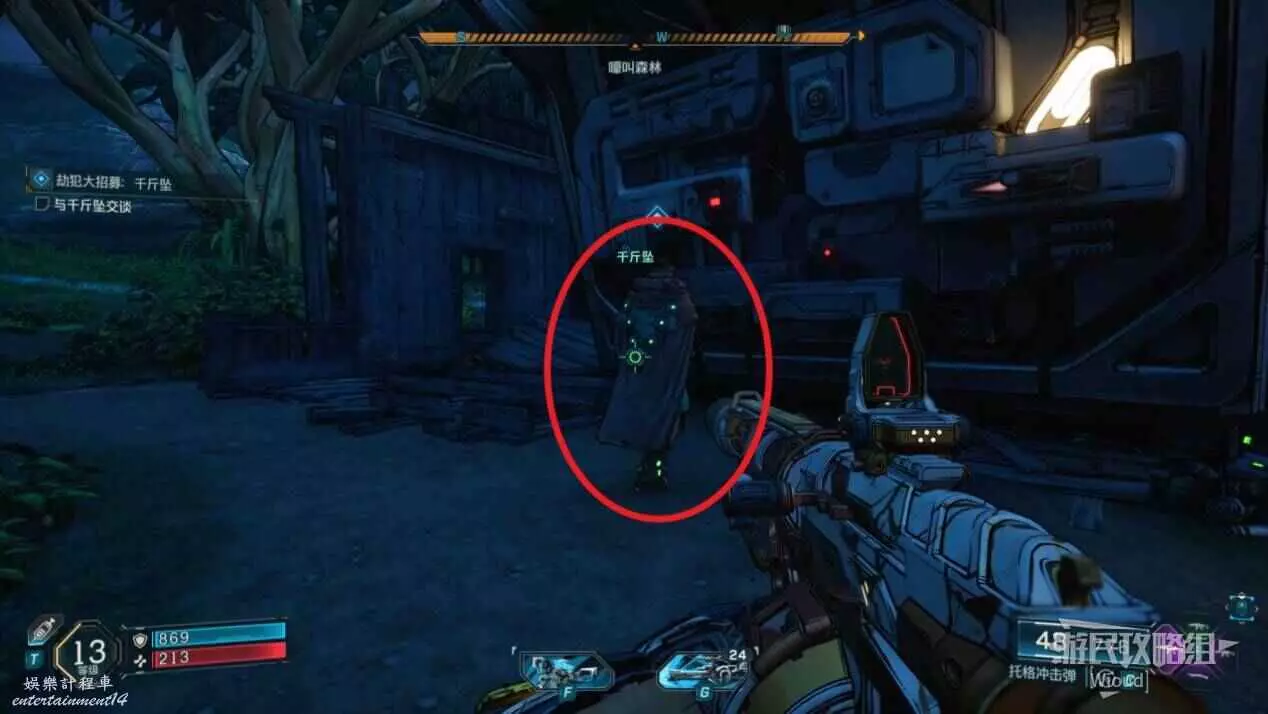 接取位置在外邦人營地,過去會看到千斤墜在之前墊片的位置站著,與其對話接取任務。