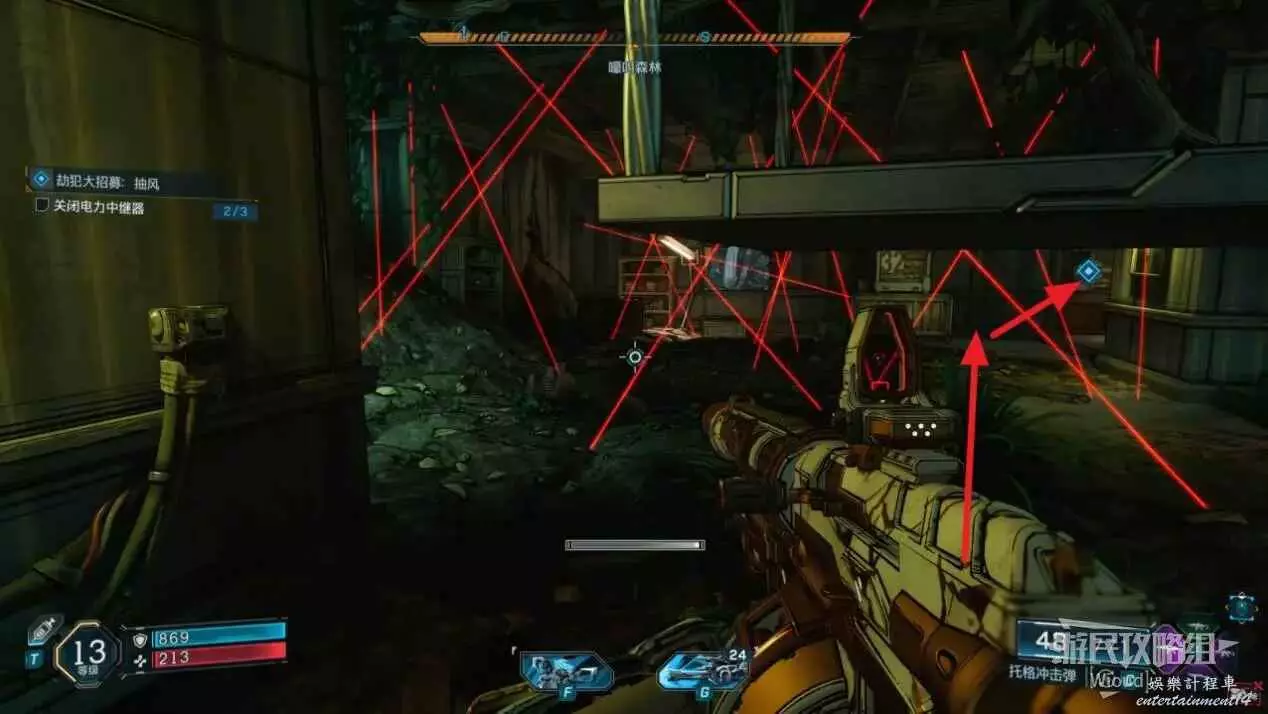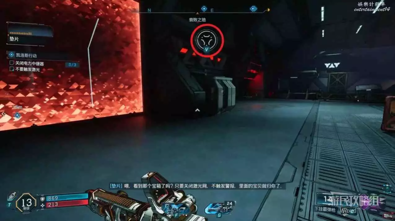 移動到大廳,這裡有兩種選擇,一是通過左邊的鉤爪上去躲避鐳射並關閉盡頭的開關,其二則是直接觸發鐳射通過戰鬥繼續推進。