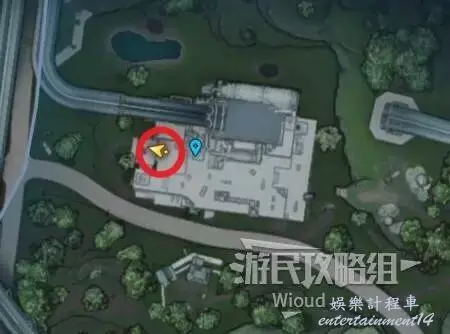 繞到建築背面,中間有個連接管道的機器,掃描一下可找到有高光的開關。